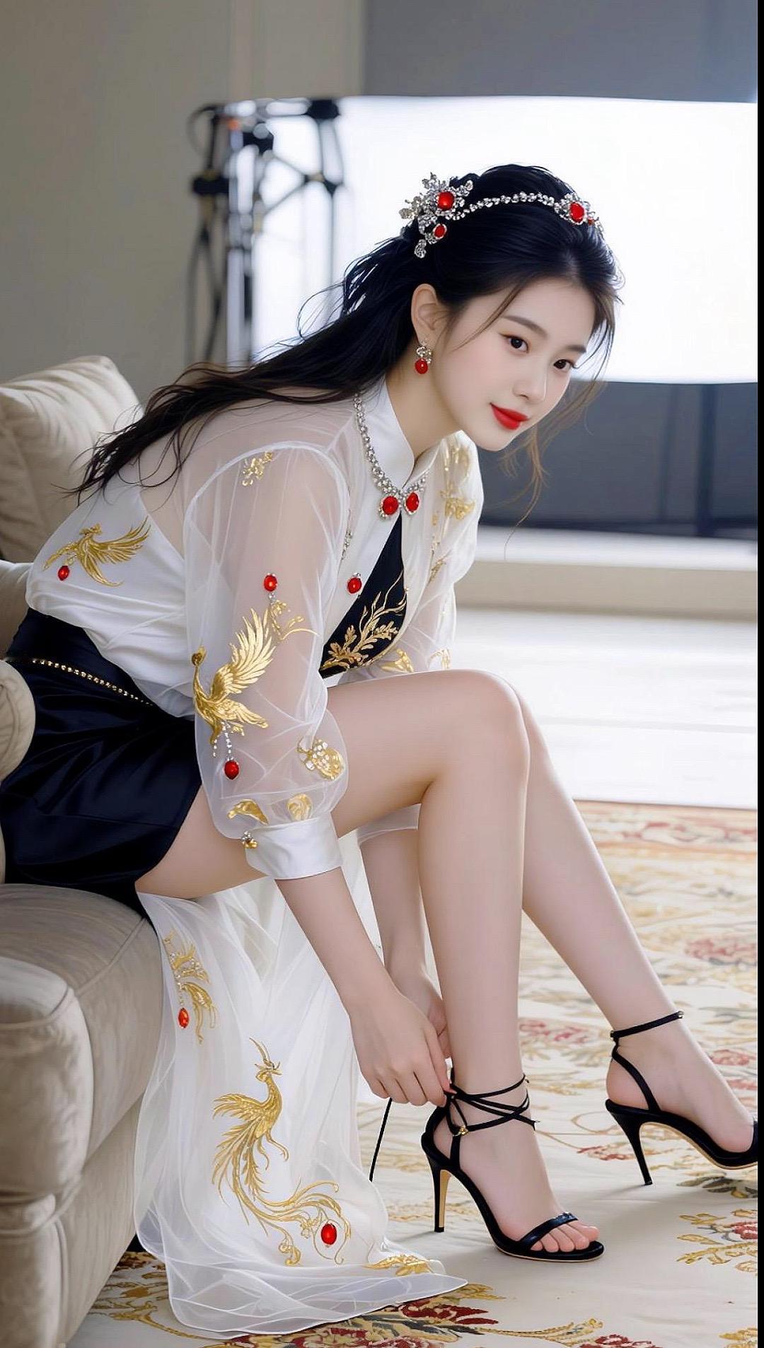 甜美少女风,温柔眼神,白皙肌肤,红唇轻启,优雅迷人。