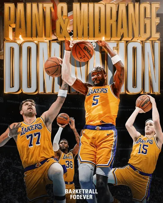 湖人本赛季在禁区和中距离区域统治了全联盟:🔸投篮命中率联盟第一🔸两分球命中率联盟第一🔸0-3英尺投篮命中率联盟第一🔸3-10英尺投篮命中率联盟第一🔸10-16英尺投篮命中率联盟第一🔸罚球次数联盟第二🔸场均犯规次数联盟第三少