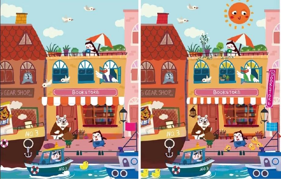 找不同挑战:太阳、小船、招牌…这图的差异太会藏了!你能10秒内发现3处算我输!