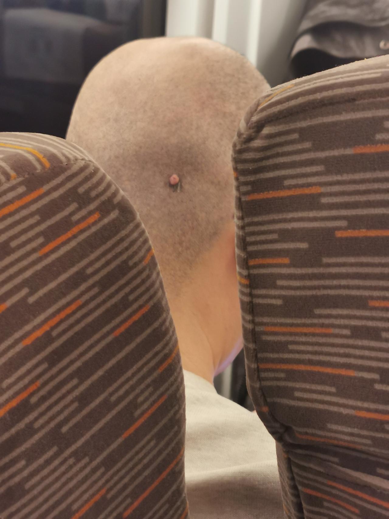 今天在高铁上,看到前座这位老兄脑袋后面长了个东西。你看看,这是什么东西啊?