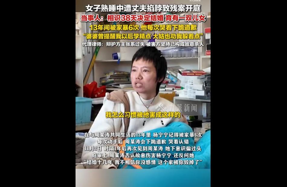 河北沙河女子杨宁宁在 13 年婚姻中遭丈夫周某涛 6 次家暴,2022 年 3 月睡梦中被其三次掐颈致五级伤残、左侧肢体偏瘫。 案件开庭审理时,周某涛否认故意伤害还倒打一耙,三方就其行为构成故意伤害罪、过失行为或故意杀人罪存在争议,法院未当庭宣判。 这起家暴案看得人既愤怒又揪心!13 年婚姻里 6 次施暴,每次打完就下跪道歉的 “忏悔戏码”,简直是家暴版 “PUA 套路”,把 “打一巴掌给颗糖” 玩到极致。 睡梦中三次掐颈致女方偏瘫,庭审上还倒打一耙说 “家被你毁掉”,这般毫无底线的操作,刷新了施暴者的无耻下限。 家暴从不是 “家务事”,而是披着家庭外衣的暴力犯罪。 一次次的原谅没有换来珍惜,反而让暴力不断升级,直到酿成无法挽回的伤害。 杨宁宁在轮椅上的抗争,不仅是为自己讨公道,更是在打破 “家暴私域化” 的错误认知。 希望法律能还受害者一个公正判决,也给所有施暴者敲响警钟:家暴零容忍,任何以 “感情”“家庭” 为借口的暴力,都必将受到法律的严惩! 别让道歉成为暴力的遮羞布,对家暴坚决说不,才是对自己最好的保护。