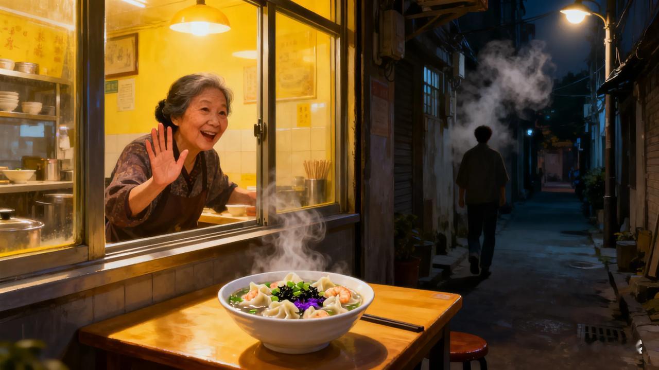 加班到深夜,走出写字楼时冷风直灌衣领。习惯性往巷口张望,竟看见那家常去的馄饨铺还亮着暖黄的灯,张阿姨正隔着玻璃朝我挥手。 “就知道你今天要加班,留了碗你爱吃的虾仁馄饨。”她麻利地把冒着热气的碗端上桌,撒上一把葱花和紫菜,汤汁鲜香味瞬间漫开。我捧着温热的碗,咬下饱满的馄饨,鲜美的汤汁在舌尖化开,浑身的寒意都被驱散了。 聊天时才知道,张阿姨本想早点收摊,却想起我前几天说过这周要赶项目,特意多等了半小时。巷口的路灯映着氤氲的热气,馄饨的香气混着晚风,简单的几句寒暄里满是暖意。 原来幸福感从不是轰轰烈烈的惊喜,而是藏在市井烟火里的惦记:一碗热乎的馄饨、一盏等候的灯火、一份不期而遇的温暖,就足以让奔波的夜晚变得柔软,让平凡的日子闪着微光。