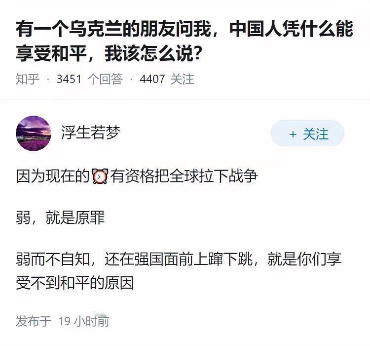 地小而不处卑,力少而不畏强,无礼而侮大邻,贪愎而拙交者,可亡也。出自《韩非子 · 亡徵》(公元前250年)。和平幸福要靠自己争取,你们想的是靠外人帮衬,不靠谱。没摆正自己的位置,身处大国身边这是地理决定的改变不了,却天天总想把火炮驾到大国边界,以为这样会安全。中国人能享受和平,凭的是实力,现在也只有美国人敢想想和中国人动手,而且要和中国人动手,还要联合它的一帮小兄弟。单打独斗的话?估计美国国会死活都不会批准这样的战争的。