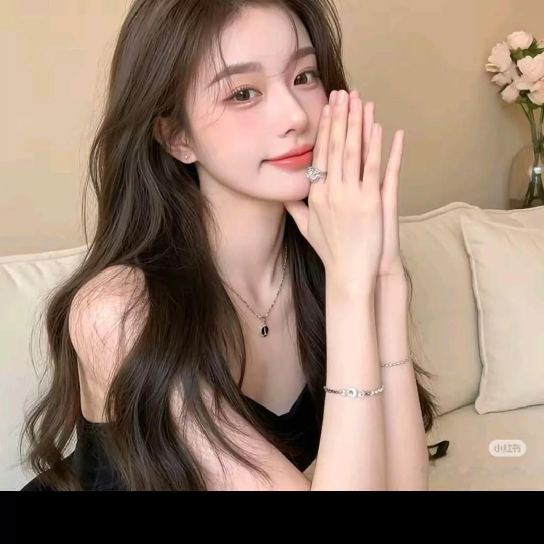 甜美少女风,温柔眼神,白皙肌肤,红唇轻启,优雅迷人。