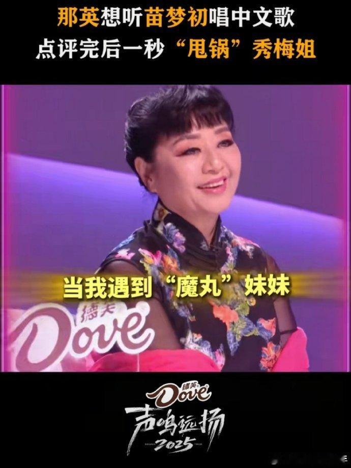 谁懂那英的可爱!偷偷念叨想听苗梦初唱中文歌,不小心说漏嘴后火速 “甩锅” 秀梅老师,这波互动 + 中文歌期待,双份快乐!