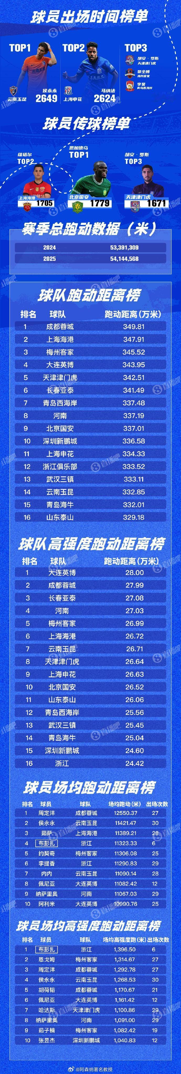 这活真细致啊!侯永永劳模啊,全勤➕场均跑动距离接近1万2。上海海港的统治力、成都蓉城的防守、北京国安的进攻,各队都有自己的亮点