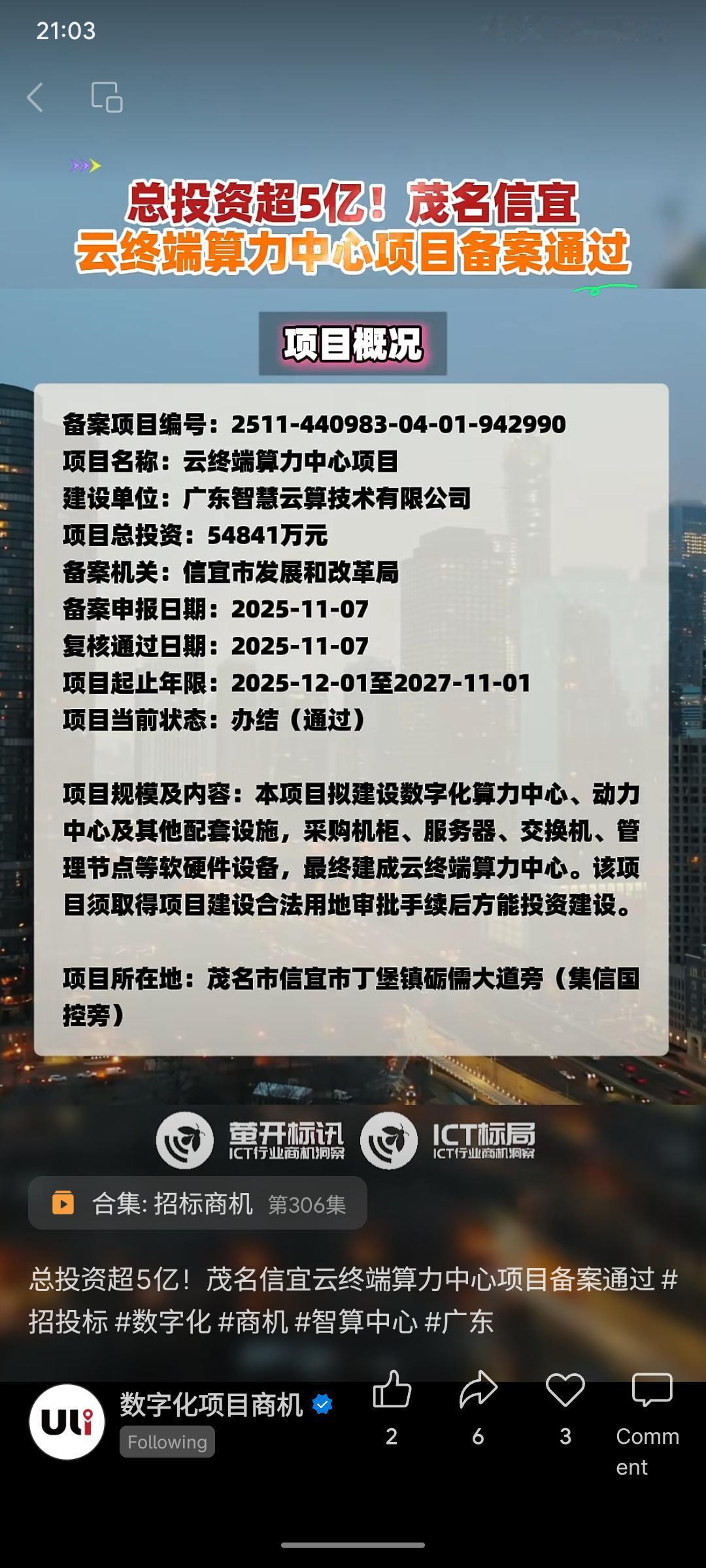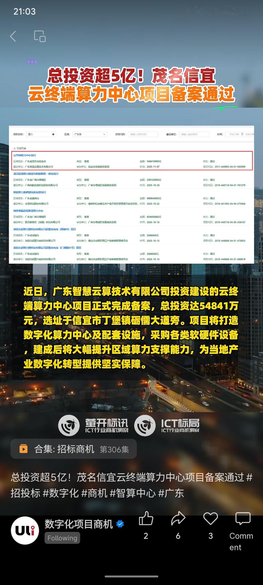 茂名信宜云终端算力中心项目已备案通过,总投资5.48亿元,由广东智慧云算法术有限公司建设。项目计划于2025年底启动,将建设数字化算力中心及配套设施,以提升区域算力,助力产业数字化转型。