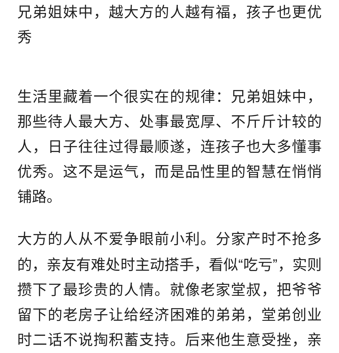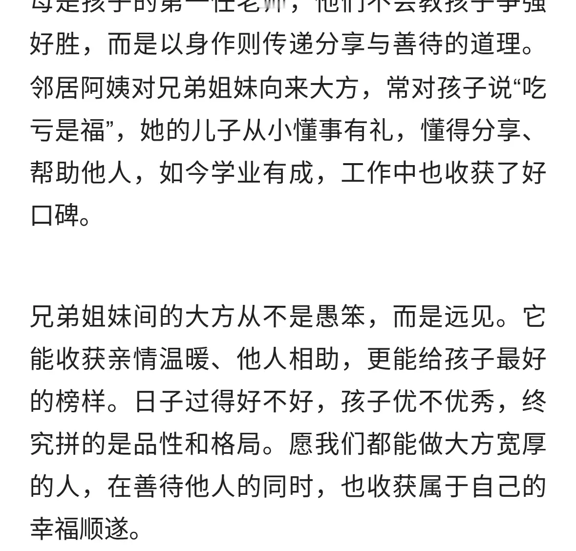 兄弟姐妹中,越大方的人越有福,孩子也更优秀