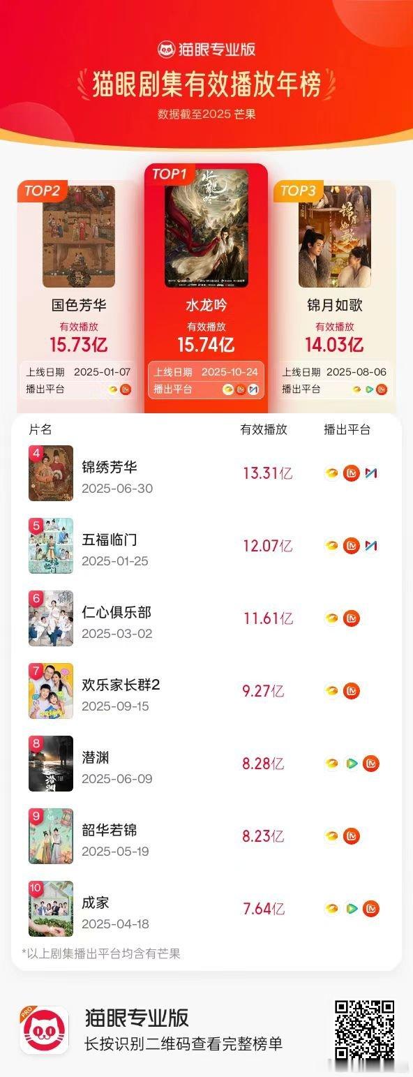 恭喜水龙吟在芒果的猫眼剧集有效播放年榜登顶!不容易啊!