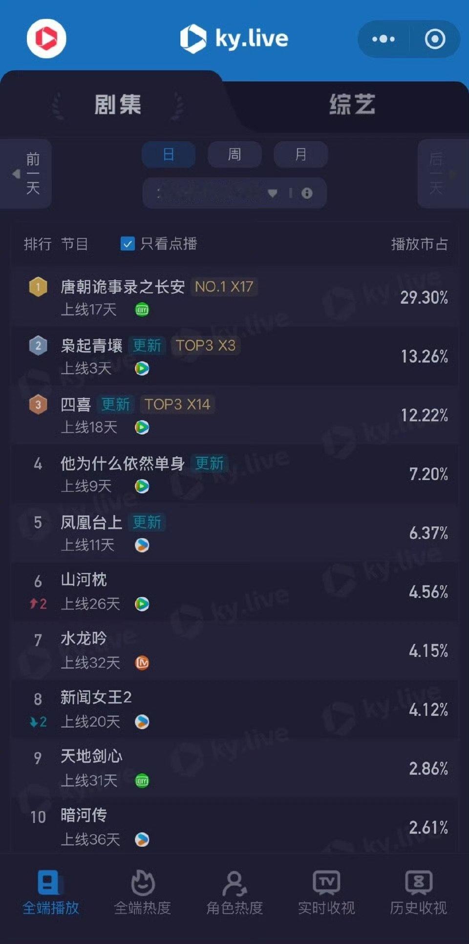 11月23日云合播放占比唐朝诡事录之长安云合32.9%目测有6000万播放量了