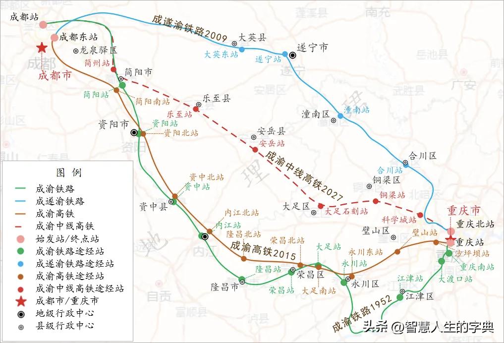 成渝中线高铁要来,现有成渝高铁会被取代吗?2027年开通的成渝中线高铁,正悄悄改写成渝双城出行格局,但现有成渝高铁绝非“过气选手”。这条设计时速350公里、预留400公里提速条件的新线,50分钟就能跑完成渝全程,比现有线路快12分钟以上。 中线走“直线”串联铜梁、大足、安岳等新站点,主打跨省快速通勤和长三角方向联运;而现有成渝高铁经资阳、内江,未来接入重庆东站后,将侧重衔接渝厦高铁,成为东南向出行主通道。两者分工明确,形成“快慢互补”的双通道格局。 对乘客来说,中线适合赶时间的商务客和跨省长线出行,现有线路则满足沿线城市往来需求,还能保持公交化密集发车优势。票价上中线或略高,但现有线路的性价比会更突出。 两条高铁不是竞争关系,而是合力织密成渝交通网,以后双城出行选择更多元,沿线城市也能各享红利。