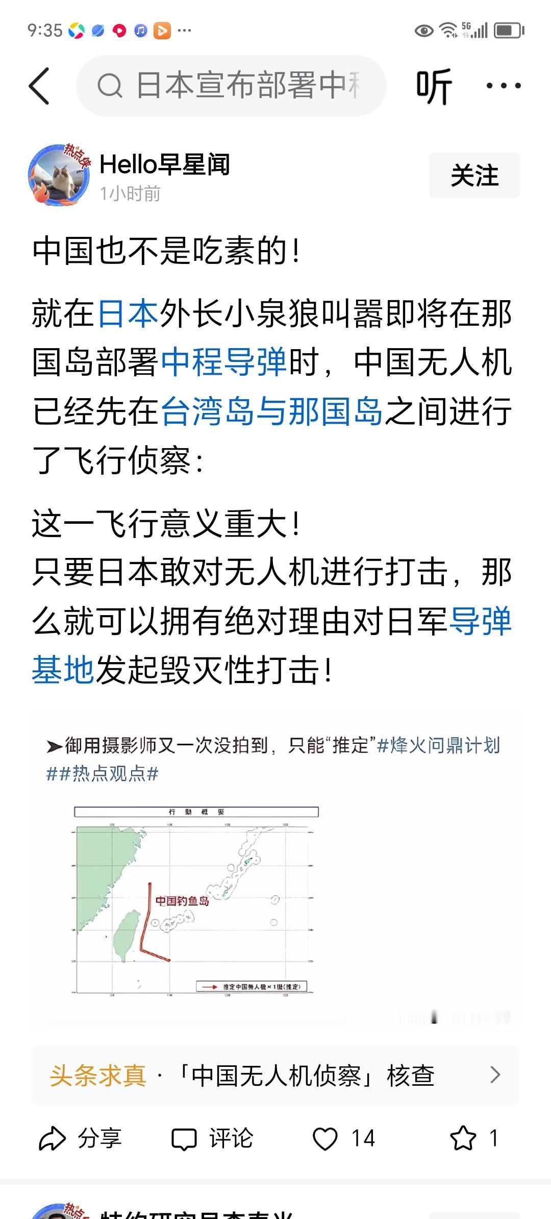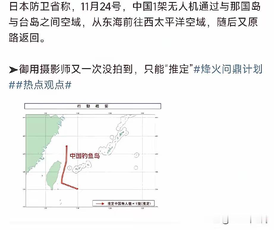 最新消息 据我了解,就在日本防卫大臣小泉进次郎叫嚣:即将在距离台湾110公里的与那国岛部署中程导弹时,中国无人机就已经开始了在台湾岛和与那国岛之间的