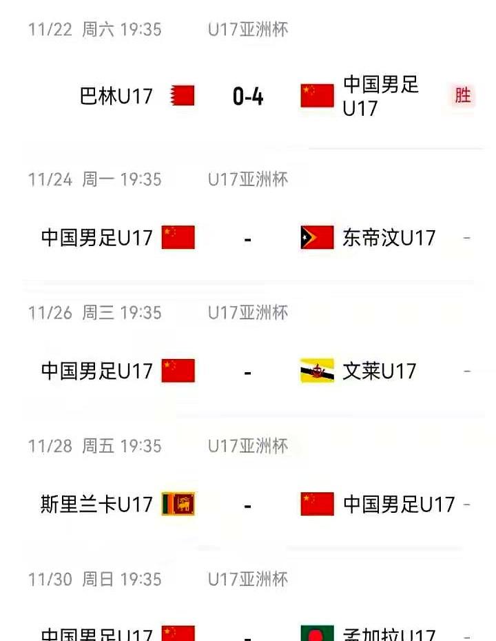 没想到孟加拉两战两胜。 U17亚洲杯预选赛里,孟加拉两战13球0失球排小组第一,中国U17首轮赢巴林后,只剩孟加拉未交手,前几轮可能因净胜球排第二,最后一轮成晋级关键战。 中国U17得赶紧调整状态,最后一轮必须拿下孟加拉才能晋级,年轻球员可不能掉链子,拿出拼劲和实力,相信他们能顶住压力赢球,别让别人压着打!