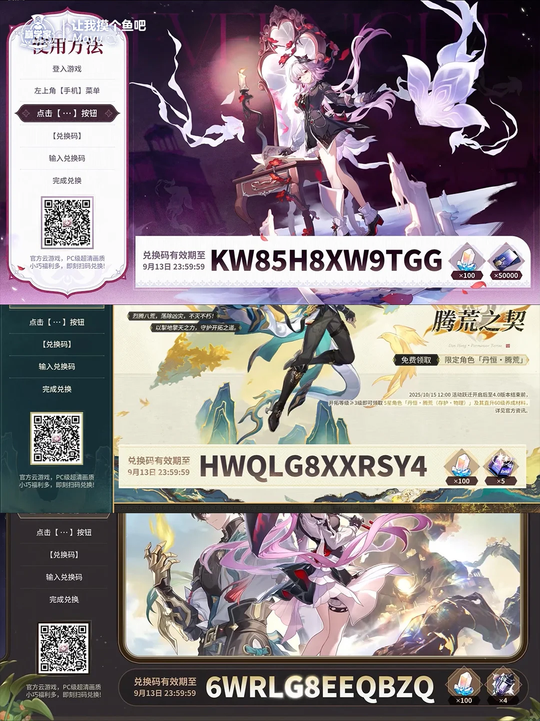 崩坏星穹铁道 崩坏星穹铁道创作者激励计划 让我摸个鱼吧Moyu 星穹铁道日更挑战 兑换码 星穹铁道攻略 星穹铁道翁法罗斯 星穹铁道前瞻 英雄未死之前 哈喽哇!这里是你们的摸鱼酱! 崩坏星穹铁道3.6版本前瞻来啦! 就在9月12日(本周五)晚19:30与大家见面~ 新版本即将上线:【长夜月&丹恒·腾荒】 有没有狠狠期待!!! 没时间看的开拓者们可以在这里插个眼O.O 摸鱼会尽快更新300星琼的兑换码,到时候会及时同步哒~ 兑换码: 1: 2: 3: 祝各位抽卡不歪,十连双金!