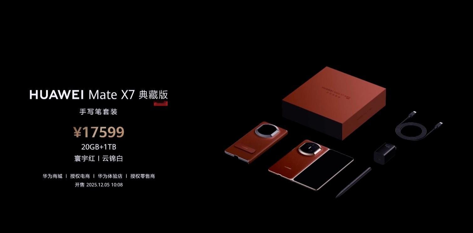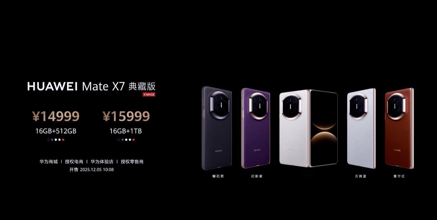 来了!Mate X7 12GB+256GB:12999元Mate X7 典藏版 16GB+521GB:14999元Mate X7 典藏版手写笔套装:17599元云锦工艺、第二代红枫原色摄像头、全新一代玄武铰链,全面升级!但价格依旧是抗打的