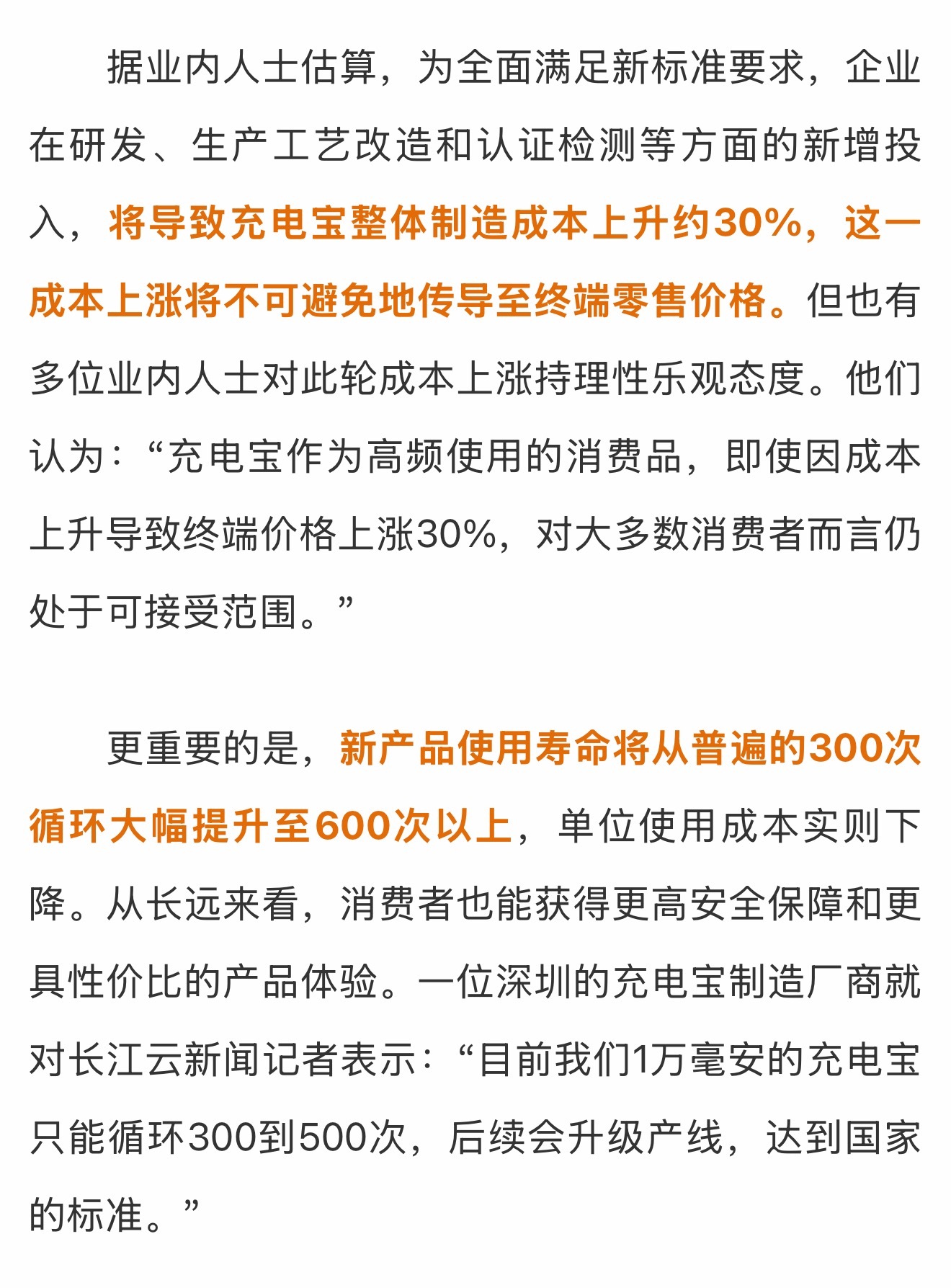 大家先别慌,新规预计在明年6月开始实施。也就是现在手上的3C充电宝可以用到新规出来之前。新规对于充电宝的生产厂商、使用寿命、电池健康等做了更严格的要求。因制造成本的上涨,所以充电宝也会相应涨价