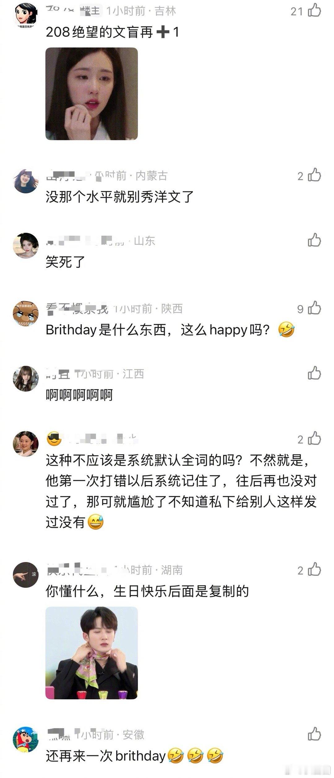 邱鼎杰祝黄星生日快乐,发三遍happy birthday都没发现有什么不对吗~