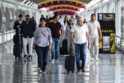 11月24日,乘客到达委内瑞拉首都加拉加斯附近的西蒙·玻利瓦尔国际机场。国际航空运输协会24日表示,委内瑞拉国家民航局告知各国际航空公司,必须在48小时内恢复飞往该国的航班,否则将面临失去飞往该国许可的风险。新华社/法新