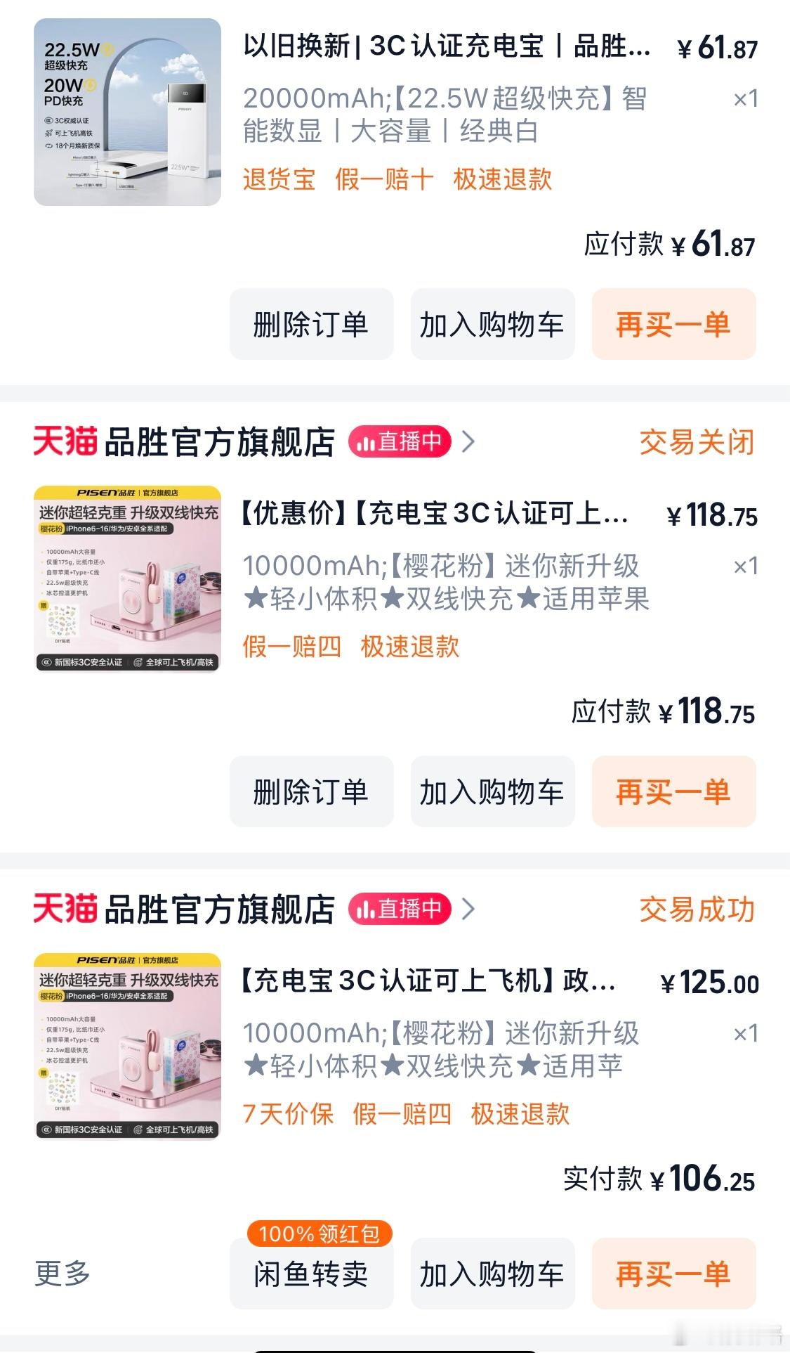 感觉现在的时间线反了不应该是先制定规则,再制作,再销售嘛感觉现在是先卖了,再说规则,再重新卖,再说规则这5年买了5个充电宝,之前没3c的概念,就买的图1️⃣里的“小米”“罗马仕”和“迪比科”。迪比科和罗马仕早早坏了,就一直用小米后来出了3c规则,没3c不能上飞机和火车,刚好我小米那个充电宝不好用了,借着这个由头买了图2️⃣里品胜的两款充电宝一款一万毫安小巧款,随身携带;一款2万毫安宽大款,长途必备感觉两个换着用,美滋滋的。没想到,买了没两个月,充电宝3C认证将全面失效,是又有新的认证了嘛?不知道品胜的失效吗?是不是更安全了呢哈哈期待啊,看看我到时候换什么充电宝吧