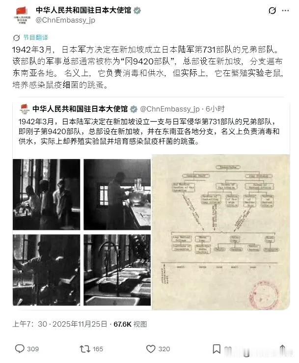 一些国家真是恬不知耻! 惨绝人寰的日本军国主义731部队,于1942年3月在新加坡建立了一支731的兄弟部队——冈9420部队,两支部队相辅相成合力残害亚太尤其是中国人民! 结果,这些国家不仅对此不闻不问,反而此时此刻公然站在了日本军国主义一方,公然为日本军国主义走狗们开脱说情,真是恬不知耻!