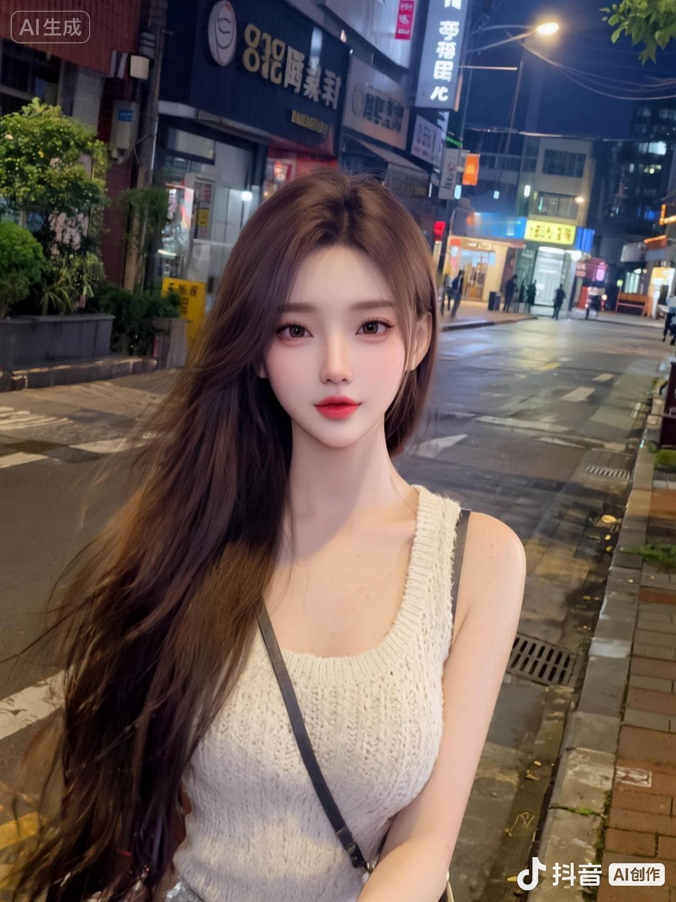 夜晚街头的甜美少女,温柔迷人,让人心动不已!💖✨