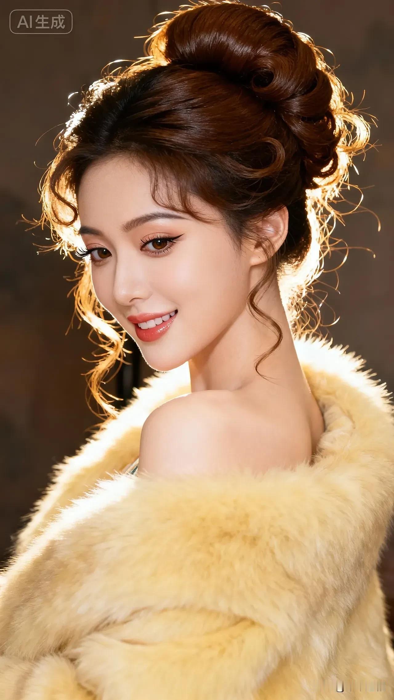 女人味的魅力在哪里? 暖绒皮草衬出优雅气场,精致盘发洒落几缕卷丝,在光影交错间,她将复古与华贵融成一抹亮色,每一个姿态都是高级感的生动注脚。 轻奢风皮草 轻奢盘发