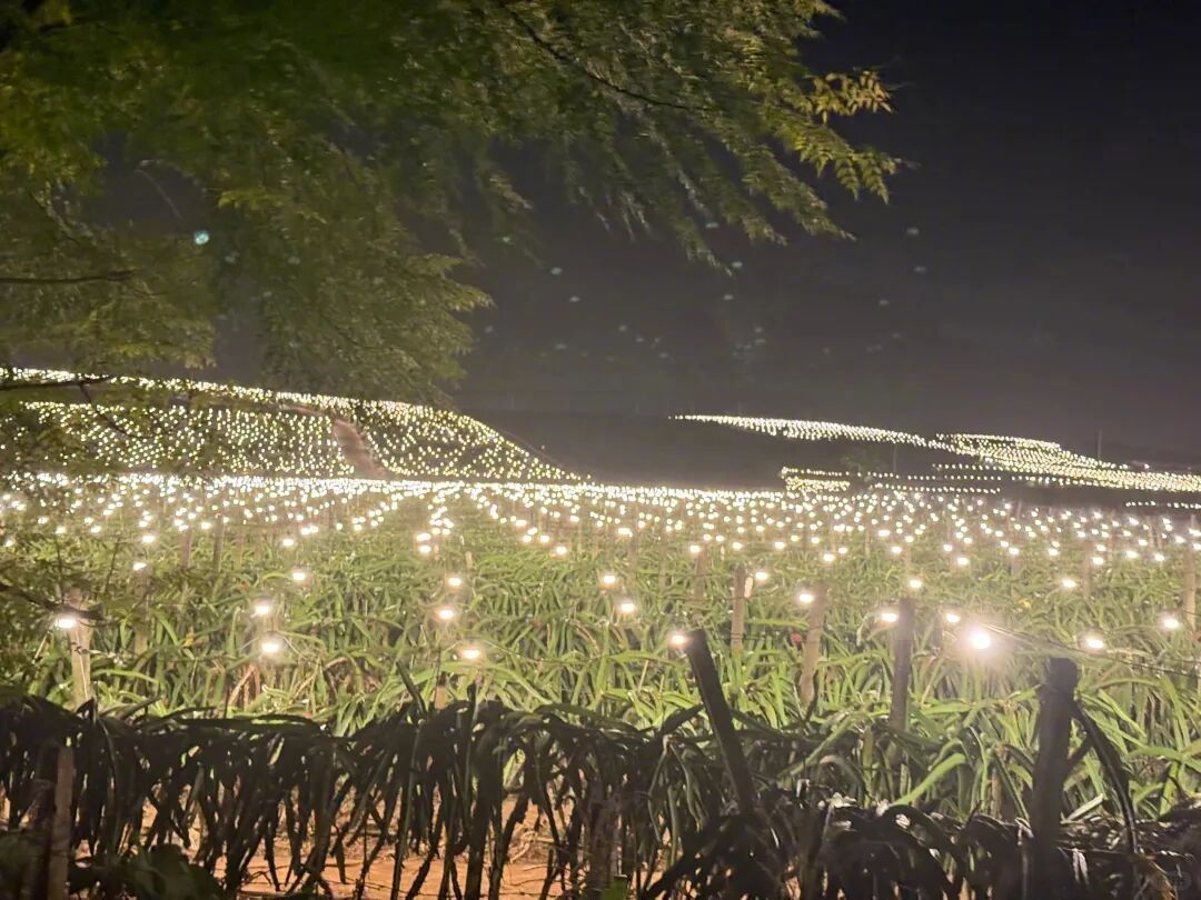 【大晚上的,为什么不让火龙果睡觉?】广西的火龙果又火了,带着它宛如演唱会现场一般的灯海一起火了。评论区除了“七不七轰隆果”的表情包,还有很多朋友晒出了自己拍的火龙果灯海——如梦似幻的点点灯光照亮旷野,一片宏大的灯光秀场之下,火龙果默默地开花结果。火龙果种植园定期开始上演的大型灯光秀,是为了让火龙果不睡觉,促进生产,从而让我们能在更多时段吃到美味营养的火龙果。别人是给点阳光就灿烂,火龙果咋这么好骗,给点灯光就行?