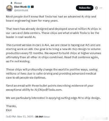马斯克官宣:AI5芯片流片即将完成【来自懂车帝车友圈】