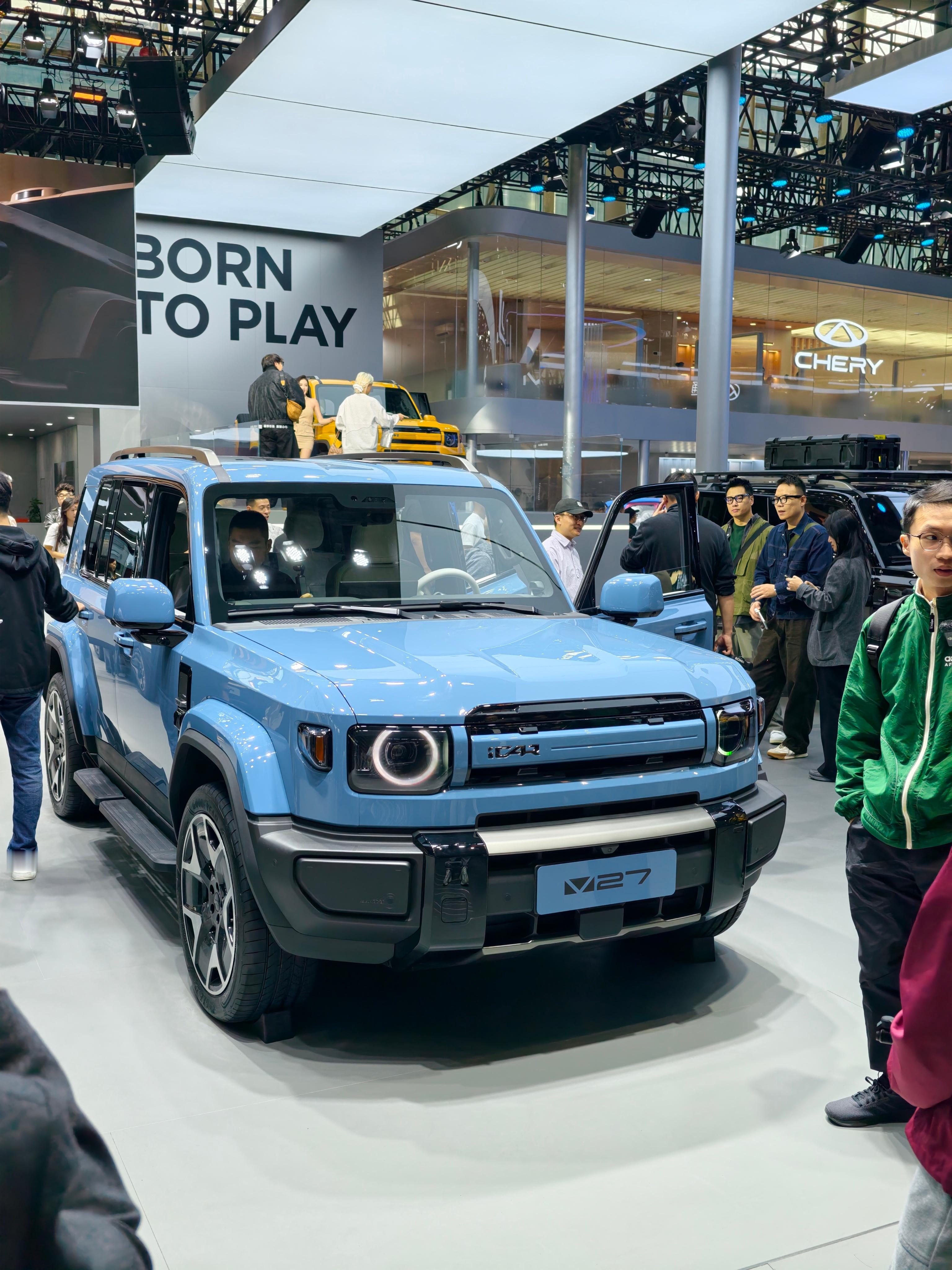 iCAR V27这车最近在广州车展上亮相,热度挺高。它给自己的定位是“中大型家庭新硬派SUV”,说白了就是想成为那个既能满足爸爸对硬派外观和性能的小心思,又能让妈妈和孩子坐得舒服的全能选手。首先一眼看过去,V27还是那个很受欢迎的“方盒子”造型,硬朗但不呆板。它有些用心思的细节,比如前脸有8处可以自己换颜色的部件,尾灯像乐高积木一样可以组合,还提供了“小书包”和外挂备胎两种风格的尾门让你选,看起来挺个性。坐进车里,视野很开阔,内饰用了“星际座舱”的概念,那个双天幕和悬浮式顶棚配上氛围灯,晚上还真有点在太空舱里的感觉。实用性是V27的一个重点。它的轴距有2910毫米,通过四轮四角的设计,把车内空间榨取到了接近70%的“得房率”,车内净高有1357毫米,全车有50处储物空间,这对经常拖家带口、东西一堆的家庭用户来说,吸引力不小。动力上,它用了奇瑞那套“黄金增程”系统,简单说就是一台1.5T高效增程器配34.3千瓦时的大电池。日常城里通勤,纯电续航200公里以上,基本不用油;真要跑长途或者出去玩玩,满油满电综合续航能超过1200公里,缓解里程焦虑。性能也不弱,前后双电机加起来455马力,官方说零百加速在5秒级别,算是很快了。在智能和安全方面,它搭载了基于地平线芯片的高阶智驾系统,和禾赛合作的“猎鹰700”辅助驾驶,该有的功能像高速NOA这些基本都具备。车身用了11横11纵的笼式结构,高强度钢占比76%以上,目标是满足中欧双五星的安全标准,给家人多一层保护。在我看来,iCAR V27最聪明的地方在于它精准切入了“家庭轻越野”这个市场。它没有像方程豹豹5或者BJ40增程版那样去追求极致的越野能力,而是用承载式车身更侧重公路舒适性和城市驾驶,同时通过不错的通过性设计和硬派外观,满足大多数人对“远方”的想象和偶尔的轻户外需求。对于苏峻博士说的“单科状元时代过去了,要当全科冠军”这个观点,V27确实在努力这么做。你们说它能成为很多家庭用户的新选择吗?