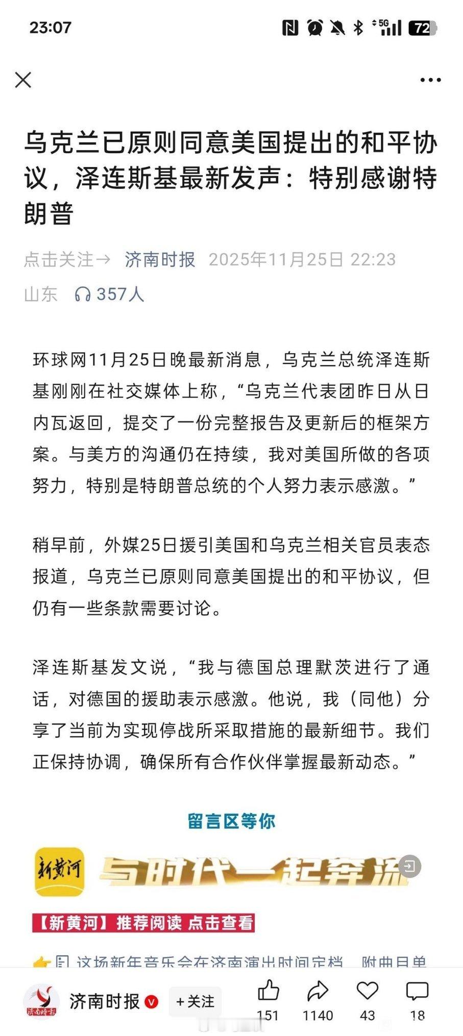 泽连斯基:特别感谢特朗普!俄乌战争打了四年,最后的结果是:资源属于美国,土地属于俄罗斯,债务属于欧洲,荣耀属于乌克兰…乌克兰带着大饥荒的仇恨,想要驱赶土地上的俄罗斯人,结果不但失去了更多的土地,也失去了百万计的青壮;欧洲巨额下注,希望乌克兰持续给俄罗斯放血,如果不是特朗普查收这点的确达到了;俄罗斯历史上赠予乌克兰大量的土地,想要给乌克兰人口结构掺沙子,但是得到的是一个世仇,虽然这次看似获利,实则也是平平。美国不但收购了大批的黑土地,还将一众乌克兰矿产资源收入囊中,的确本轮最大的赢家。美乌尚未敲定和平协议最终文本特朗普称愿与俄乌领导人会面乌克兰已原则同意美国提出的和平协议热点观点