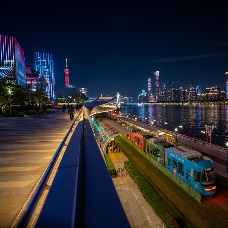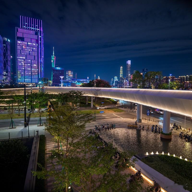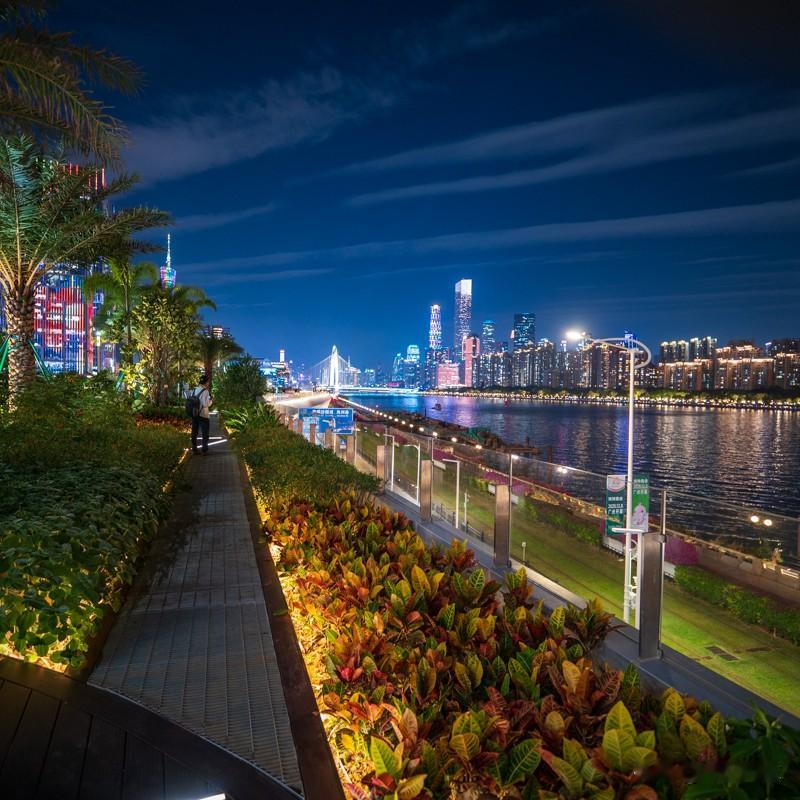 平台东西向全长约500米,西可看珠江新城、小蛮腰,东可看华南大桥、琶洲大桥,风景靓丽。
