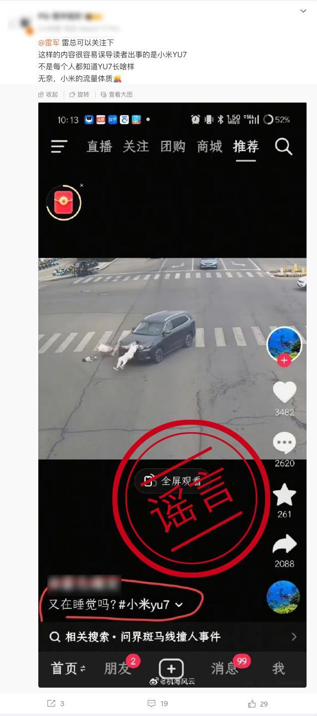 官方终于下场开始辟这类谣言了,早就该这么做。这种谣言对于关注车圈的人来说会觉得是在玩梗,但对于绝大多数不那么关注行业动态的普通人而言,你标题怎么写,他们就怎么信,他们不会分辨小米有没有M7,他们只会一而再再而三地觉得小米汽车不安全、不靠谱。