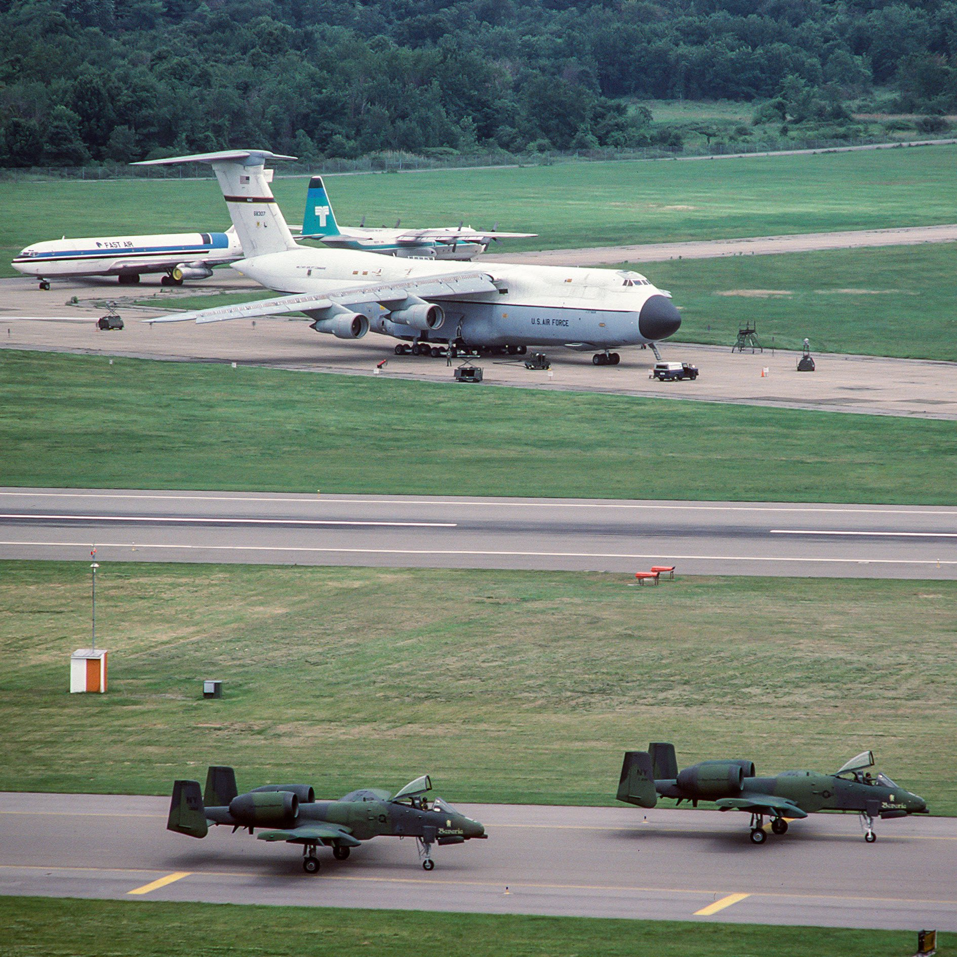 1985年7月。斯图尔特国际机场A-10与C-5银河同框