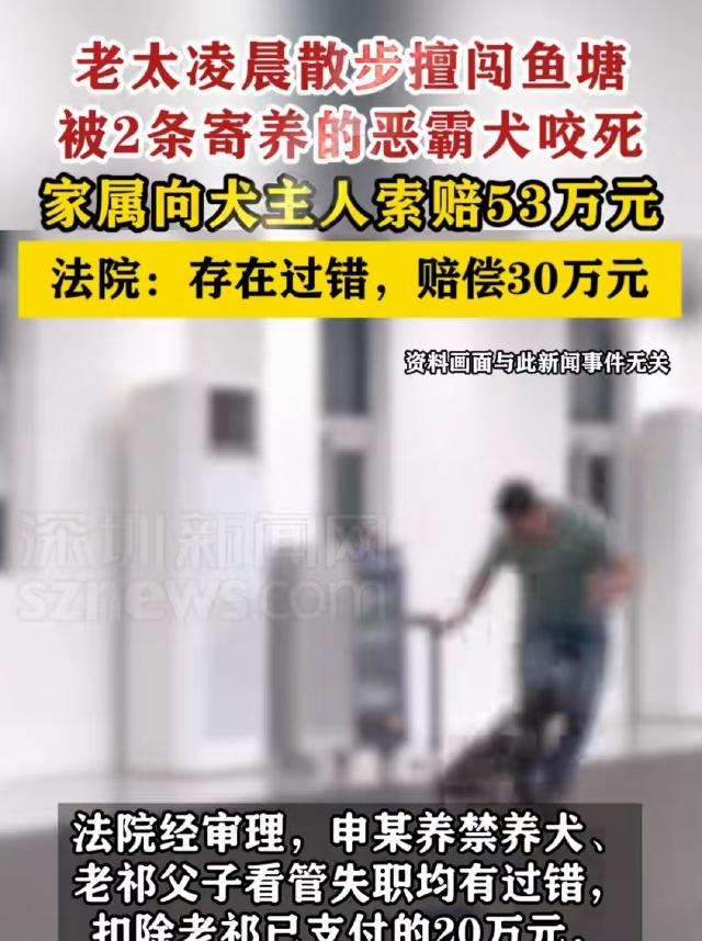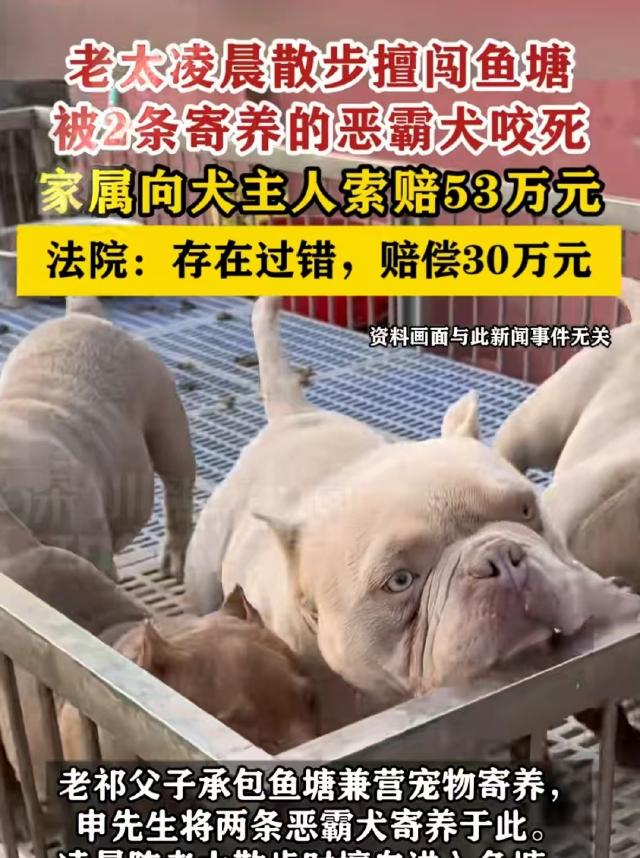 上海,一位80多岁的陈老太因年纪大睡不着,凌晨五点出门溜达。她来到一片私人鱼塘,见有免费粽叶便想摘,不顾鱼塘有围墙和门,擅自闯入。结果被寄养在院里的两只烈性犬撕咬,不幸去世。老太家属要求鱼塘承包者和狗主人赔偿53万,鱼塘主人觉得冤,出于人道主义赔了20万,狗主人却拒不赔偿,家属一怒之下告上法庭。 凌晨五点的上海松江泖港镇,薄雾像一层薄纱裹住乡间鱼塘。 83岁的陈老太攥着个洗得发白的粗布包,沿着田埂慢慢走,她常年被失眠困扰,天不亮出门溜达是雷打不动的习惯,只是这天,塘边那丛冒尖的翠绿粽叶,成了她生命的休止符。 陈老太驻足在鱼塘铁丝网外,眯眼望着水面漂浮的粽叶。 铁丝网不算矮,顶端还拉了防盗刺,四道铁门都挂着搭扣,只是最东侧一道门的铁丝网被雨水冲得有些变形,刚好能容下一个老人弯腰通过。 她犹豫了两秒,想起孙子嚼粽子时的笑脸,还是猫着腰钻了进去。 这片鱼塘是祁家父子经营的,除了养鱼,老祁还偷偷接了宠物寄养的活计,周边农户外出时,常会把狗寄养在这儿,每月能多赚千把块。 十多条狗散养在塘边棚舍,其中两条恶霸犬是附近申先生寄养的,因为性子烈,被单独关在最内侧的围栏里。 那天上午八点,小祁去给狗添食,刚拐过棚舍就浑身发冷:围栏门的插销掉在地上,两条恶霸犬正蹲在泥地里舔嘴。 不远处的粽叶丛旁,陈老太蜷缩着,粗布包散开,粽叶撒了一地,身下的泥土混着血迹渗进地里。 报警后,法医的鉴定结果让家属崩溃:创伤性休克死亡,全身咬痕与恶霸犬齿印完全吻合。 就摘几片叶子,怎么就把命丢了?陈老太的儿子在派出所哭红了眼,他找到祁家父子和申先生,提出53万元的赔偿,这是老人的死亡赔偿金、丧葬费和精神损失费的总和。 然而第一次协商在村委会办公室不欢而散,祁家父子拍着桌子喊冤,我们装了四道铁门,铁丝网比人还高,是她自己闯进来的! 但看着家属抱着老人遗照的模样,老祁终究软了心,当天凑了20万元递过去,算是人道主义,别让老人走得不安稳,双方签了初步和解协议。 可申先生的态度截然不同。他赶到村委会时,手里攥着寄养协议,我每月给老祁800块寄养费,狗的看管责任早归他了,凭什么让我赔? 更让家属愤怒的是,他私下跟村民说,这老太太就是贪小便宜找死,忍无可忍的家属,把申先生告上了法院,法院随后追加祁家父子为共同被告。 庭审时的焦点,像三把锤子敲在每个人心上,申先生坚称“寄养即免责”,但法官当庭出示的证据让他语塞。 上海2011年施行的《养犬管理条例》里,恶霸犬明确在禁养名录内,申先生2020年买狗时,宠物店的销售记录上写着“已告知属禁养犬”,他却为了避查,找祁家当“避风港”。 违法饲养是源头错,《民法典》明确规定,禁养烈性犬伤人,饲养人承担无过错责任,就算你把狗送出去寄养,主人的身份和责任都没变。 法官的话掷地有声,但祁家父子的责任也没跑掉,小祁在法庭上承认,恶霸犬的围栏“从来没挂过锁,插销插紧就行”,更没贴过“内有恶犬”的警示牌。 收了寄养费,就得尽看管义务,用插销代替锁,把安全当儿戏,这就是失职。 法官指出,作为场地管理者,他们对寄养的烈性犬有更高的安全保障义务,这种疏忽和悲剧直接相关。 至于陈老太的过错,法院的认定很清晰:擅自闯入私人领地确实有过失,但这是“一般过失”,她没挑逗狗,也不知道围栏里有烈性犬,不是“明知危险仍闯入”。 根据法律,只有被侵权人故意或重大过失才能免责,陈老太的行为顶多让侵权方减轻责任,不能成为他们脱责的理由。 最终判决下来时,法庭里一片寂静:陈老太家属合理损失共计51万元,加上1万元律师费,申先生和祁家父子共担90%责任。 扣除祁家已付的20万,申先生需赔偿30万元,祁家父子承担连带责任,申先生攥着判决书的手不停发抖,他原本开着家小装修店,这30万几乎是全部积蓄。 如今再路过那片鱼塘,会看到铁丝网换成了更高的钢板网,恶霸犬的旧围栏处,挂着块红底白字的警示牌,禁养烈性犬,违者担刑责。 塘边的粽叶长得更旺了,只是再也没人会弯腰去摘,这场悲剧里,没有赢家。申先生为侥幸付出半生积蓄,祁家父子因贪小利毁了口碑,陈老太的粽子永远没包成。 那些看似不起眼的“小便宜”,可能藏着致命风险;私人领地的边界线,从来都是保护自己的安全线,敬畏规则,才是对生命最基本的尊重。
