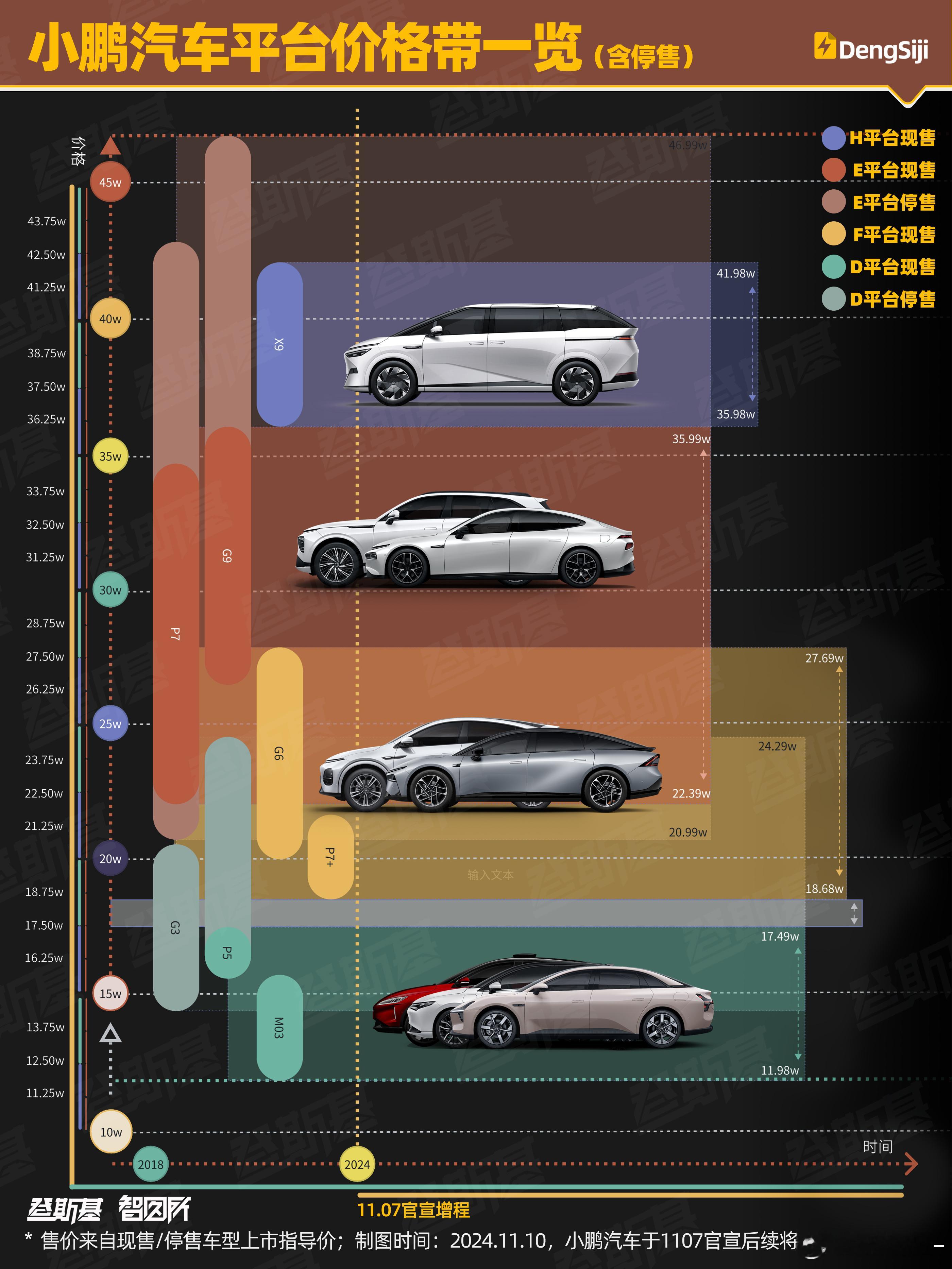 资本市场从不缺数据支撑,但数据容易忽视情绪价值。小鹏品牌从名字上貌似天然就有劣势,有几次挣扎过品牌向上之后,乏力、无力,不如顺势,找准自己定位便好了。所以它没将MONA独立成子品牌,是对的,不演了,它就是自己。小鹏代表的不是国产家用车的激进叙事主体,而是演绎了智能也能成取胜长板,从而分割市场份额的拓荒牛,连带着培育庞大走量的供应链,这才是大家应该窥见的品牌价值。科技普惠的前提是满足主流智能后足够便宜,这一点小鹏绝对把它演绎得淋漓尽致。看这个价格区间对比图1:当下价格体系图2:一年前的价格体系整体价格区间下沉,而MONA猛攻下季度均价再往下探至15.56万元。X9是最顶的价格,而增程版进而拉低价格门槛,或许将成为新的变量。从新势力维度,薄利多销,不是坏事。纯电卖了100万台,讲真,挺难的。小鹏高管曝x9超级增程北方多地订单翻倍新能源汽车我和汽车的日常