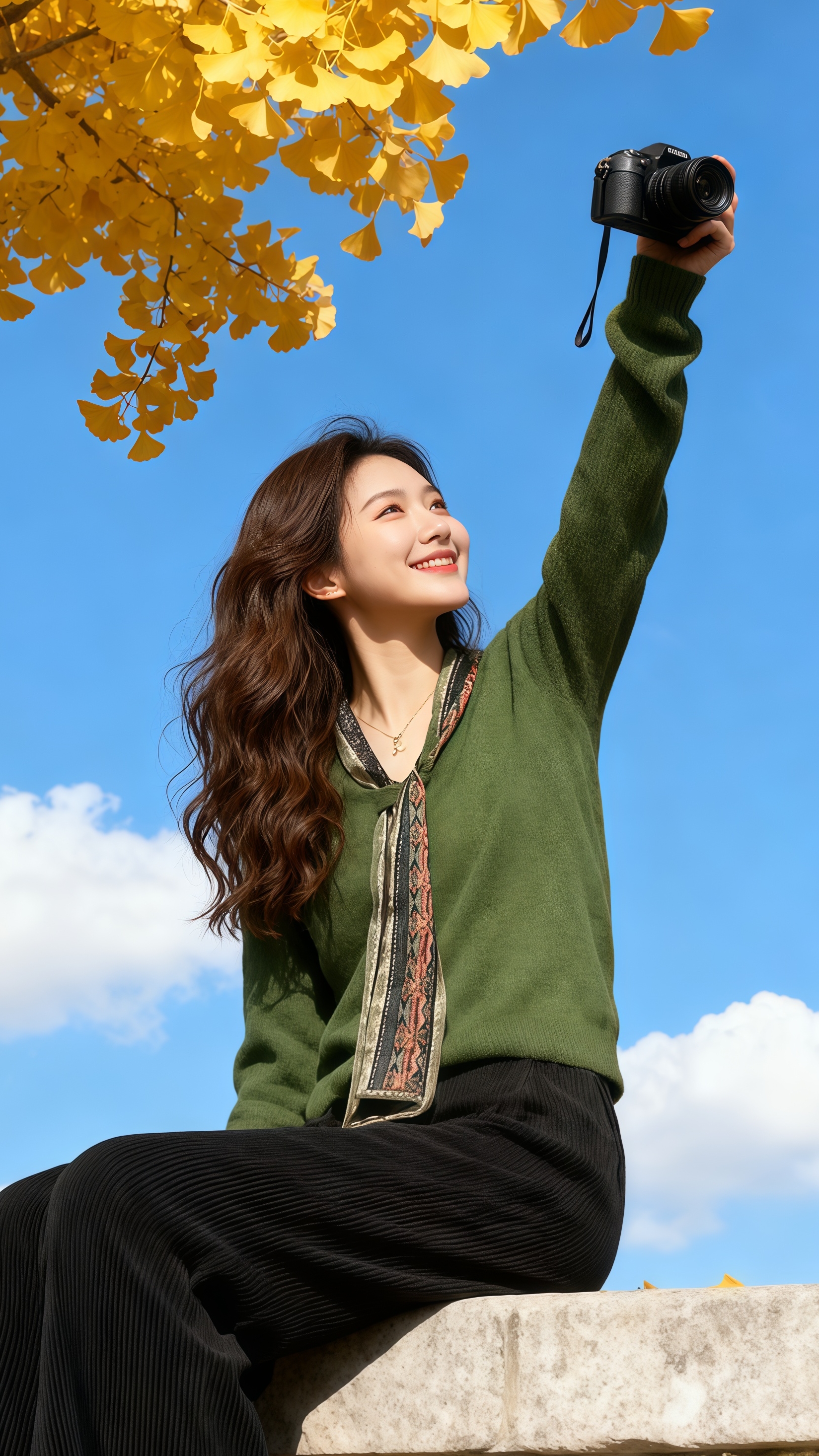 这件墨绿丝巾毛衣直接把秋日氛围感焊死了!