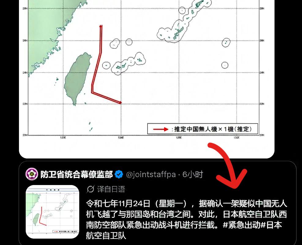 日本拦截我机目的何在 ​日本自卫队发布消息自称于24日,在近台海域起飞战斗机拦截我方无人机。 ​ 联想日本防相此前表态及在近台岛屿部署中程导弹,可以判知,日本显然根本没打算对中国示弱,更不打算反转敌华朝向。 这听起来像例行公事,但细看时间、地点和背景,事情就没那么简单了。 就在几天前,日本宣布将在距离台湾仅110公里的与那国岛部署中程地对空导弹;再往前推,首相高市早苗刚在国会抛出“台湾有事即日本存亡危机”的论调。如今军机升空、导弹上岛、政客放话,三件事串在一起,很难让人相信这只是巧合。 日本真的只是“防御”吗?还是说,它正借着美国战略东移的东风,一步步试探中国的底线? 过去几年里,日本在安全政策上的转变肉眼可见。从解禁集体自卫权,到大幅增加防卫预算,再到如今把导弹直接摆到台海门口,每一步都踩在中国核心利益的红线上。尤其值得注意的是,这次部署的03式中程导弹射程虽标称50公里,但配合岛上已有的雷达和指挥系统,实际监控范围可覆盖整个巴士海峡——那是解放军进出西太平洋的关键通道。 这不是单纯的军事动作,而是一种政治信号:日本想用“前沿存在”把自己绑上台海局势的战车。更值得警惕的是,这种姿态并非孤立现象。高市早苗作为右翼代表人物,多次参拜靖国神社、否认侵略历史,如今又在涉台问题上大放厥词,显然不是一时冲动,而是日本国内政治右转的集中体现。 有人会说,日本不过是美国的“跟班”,不敢真动手。但现实可能更复杂。美国嘴上喊盟友团结,背地里却常把日本当棋子。特朗普最近一句“很多盟友并不是我们的朋友”,就让东京心里发毛。可即便如此,日本仍选择高调挑衅,说明它不只是被动执行美国指令,而是主动押注——赌中国不会轻易动武,赌国际社会会默许它的“正常国家化”野心。 但中国能接受这种赌局吗? 答案显然是否定的。中方已暂停多项对日交流,发布赴日旅游和留学风险提示,停止进口日本水产品,甚至重提琉球地位问题。这些反制看似经济文化层面,实则传递一个清晰信号:你若步步紧逼,我就层层回击。更关键的是,解放军无侦-10无人机近期多次出现在琉球附近空域,飞行轨迹精准贴近敏感区域——这绝非偶然巡航,而是一种“看得见的警告”。 现在,日本部分政客似乎误判了形势。他们以为中国经济依赖日本市场,就会投鼠忌器;以为美国撑腰,就能有恃无恐。却忘了,今天的中国早已不是二十年前的中国。统一是大势,主权不容交易,任何外部势力试图插手台湾问题,都将面临不可承受的代价。 中日之间会不会打起来?我不认为双方都想要战争。但危险恰恰在于,一方不断试探,另一方持续忍让,最终可能因一次误判、一次擦枪走火,滑向无法挽回的局面。历史上太多冲突,都不是因为谁想打,而是因为谁都觉得“对方不敢”。 现在的问题是:日本到底是在为和平布局,还是在为冲突铺路?如果它继续把挑衅当作政治资本,把中国的克制当作软弱,那么所谓“防御性部署”终将变成自我实现的预言。 真正的安全,从来不是靠导弹堆出来的,而是靠尊重与互信筑起来的。中国始终主张和平共处,但也从不畏惧捍卫核心利益。希望东京的决策者能看清这一点——别等到轰鸣声真的逼近本土,才想起和平有多珍贵。