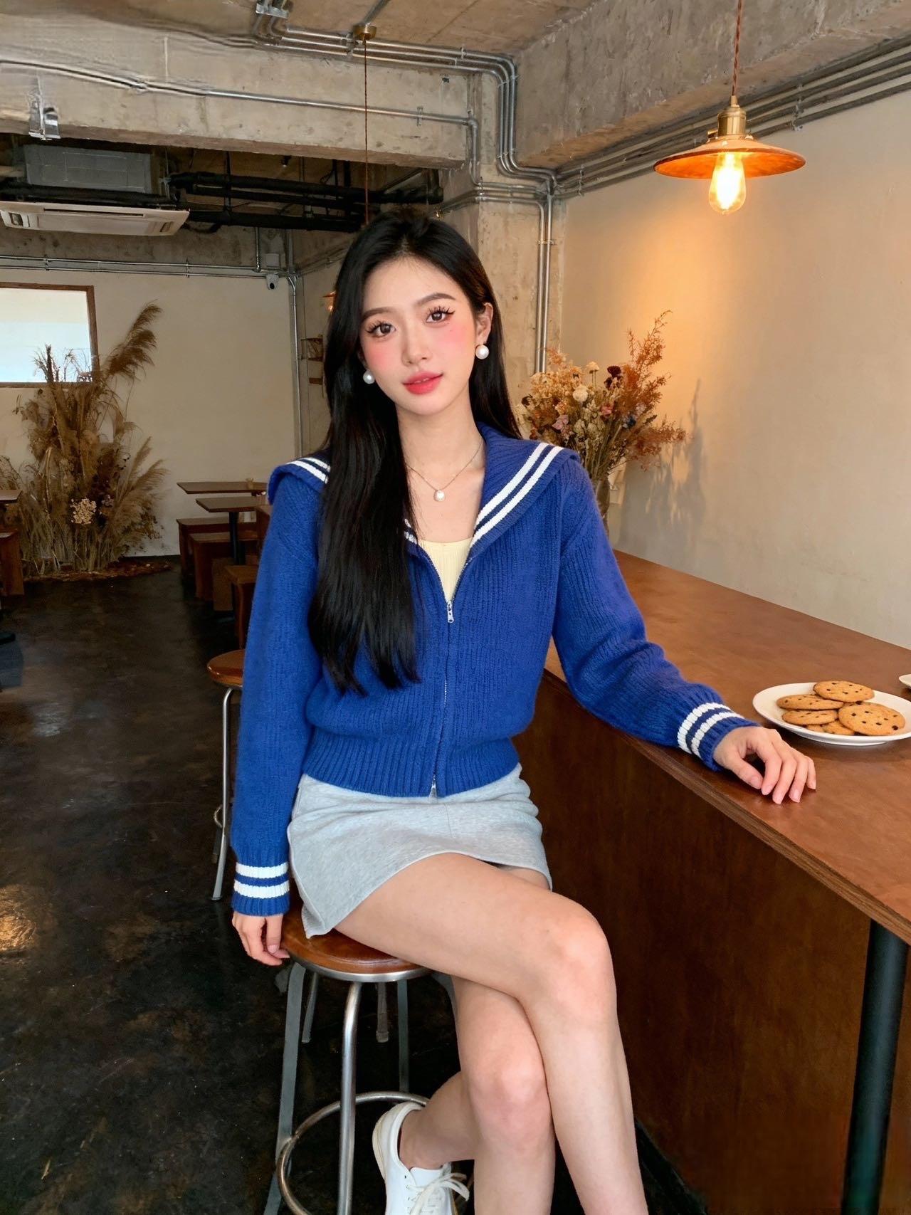 今天是海军领甜妹·咖啡屋限定☕ 降温天裹上这件宝蓝海军领毛衣,一整个撞进温柔里!白边领+袖口条纹像把海盐汽水穿在身上,内搭鹅黄小吊带露出点边边,甜得刚好不腻~ 配浅灰短裙和白鞋,往咖啡馆吧台一靠,暖黄灯光裹着饼干香,连指尖都软乎乎的~这种“舒服又亮眼”的穿搭,踩点出门都能被夸元气,是把快乐穿在身上的一天~ 你们冬天会偏爱这种亮眼又软糯的色系吗~美女人像群 高清美女 美女欣赏图片 人到中年,怎么改掉爱看美女的臭毛病