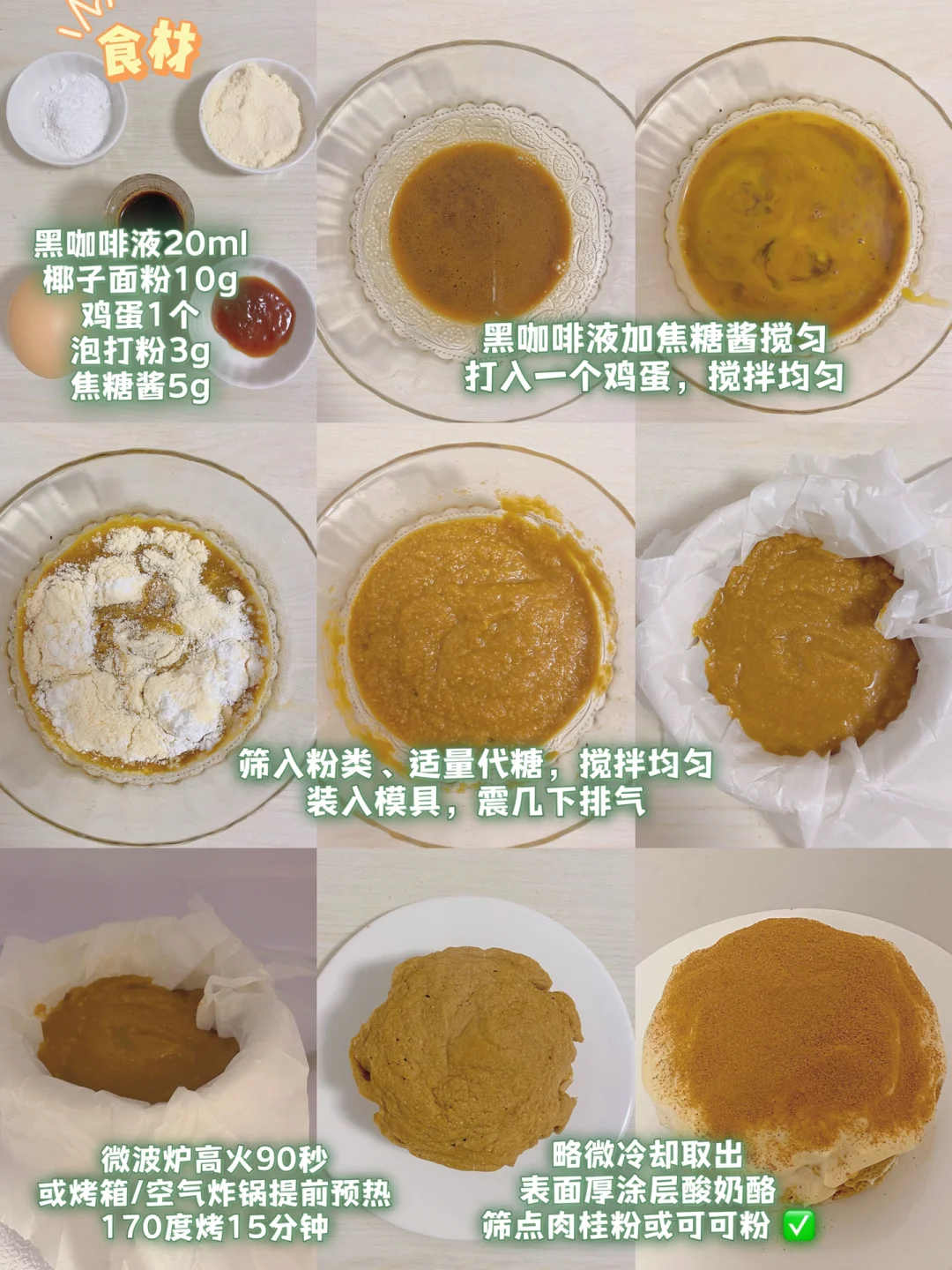 👩🍳微波炉小蛋糕再次上线🙋,今日是焦糖咖啡味的,浓郁且上头,咖啡星人狂喜‼️关键无油无面粉,1人份解馋的量🐴住~