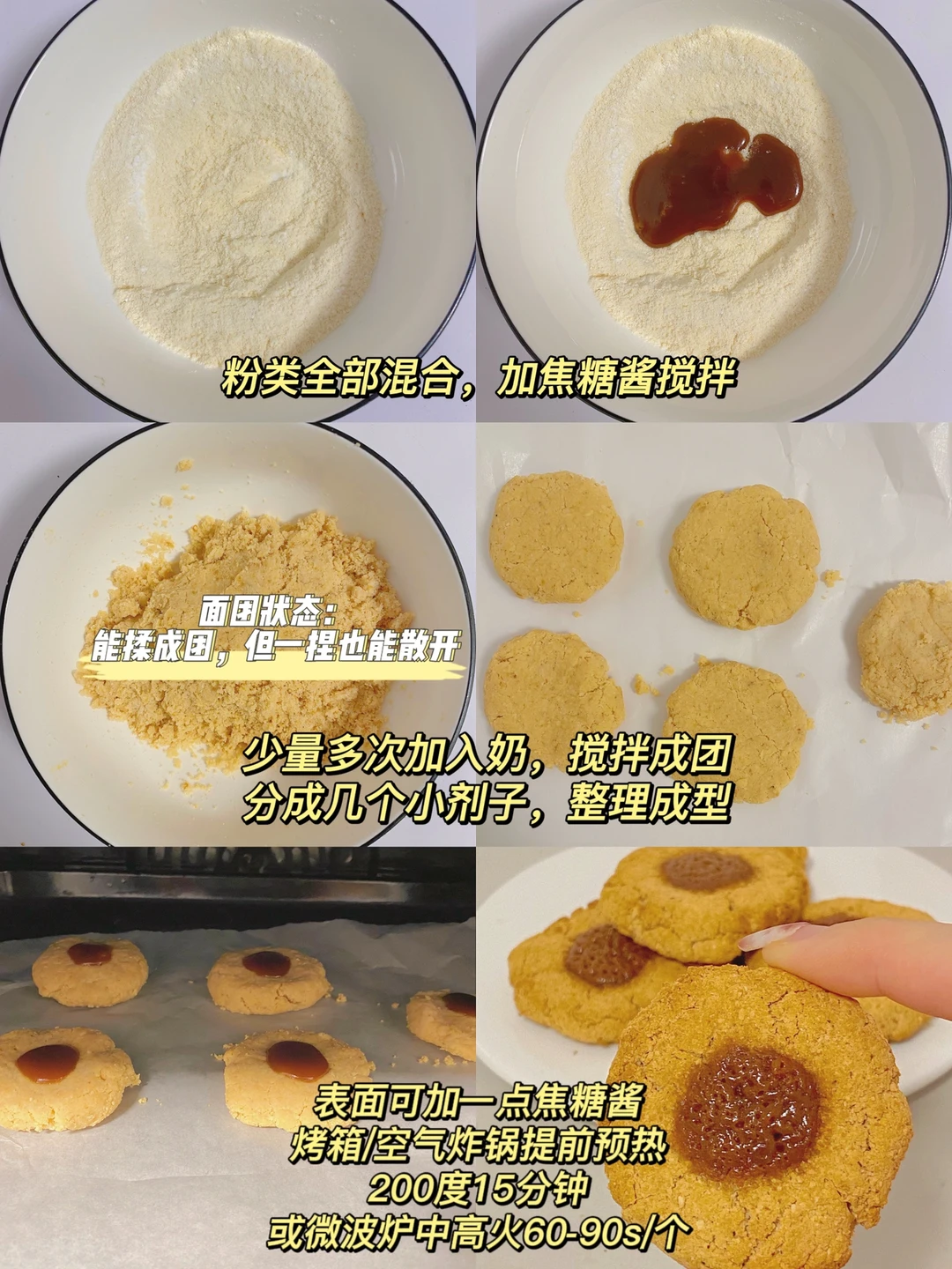 🌈烤箱/微波炉/空气炸锅自行选择;微波炉版会更像曲奇🍪,是软心的口感;空气炸锅/烤箱版外脆内软~