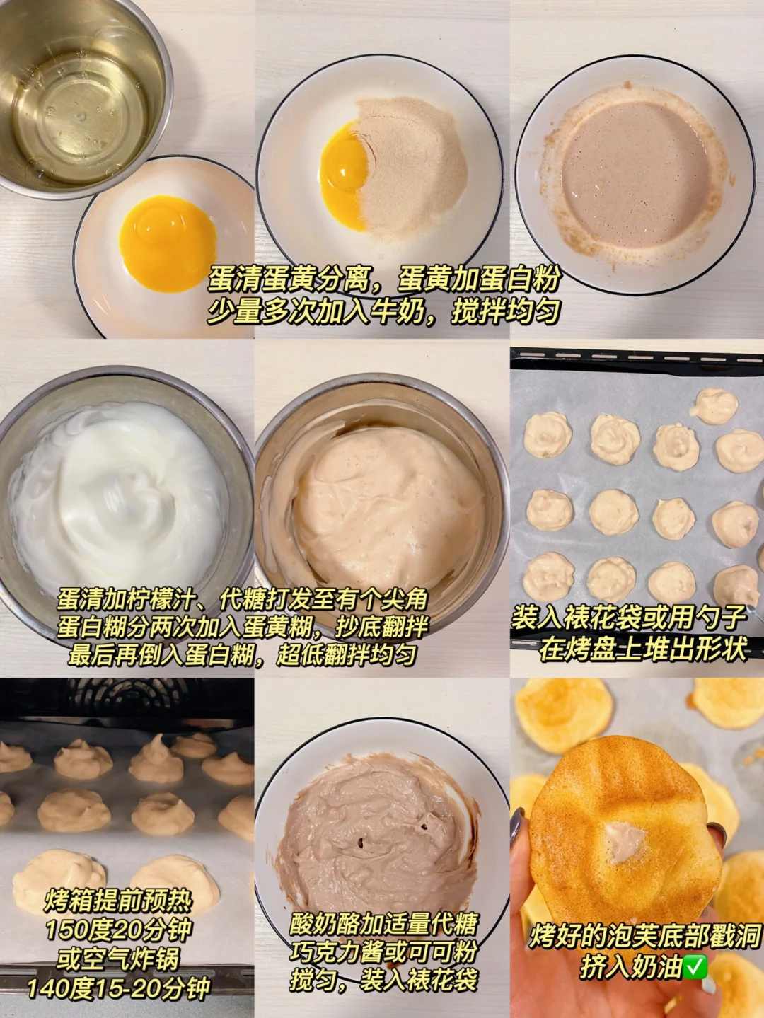 👩🍳做过很多低卡泡芙,高蛋白款的试过嘛~只需3种食材‼️而且,无油无面粉,配上自制的巧克力奶油,一口一个,超nice‼️