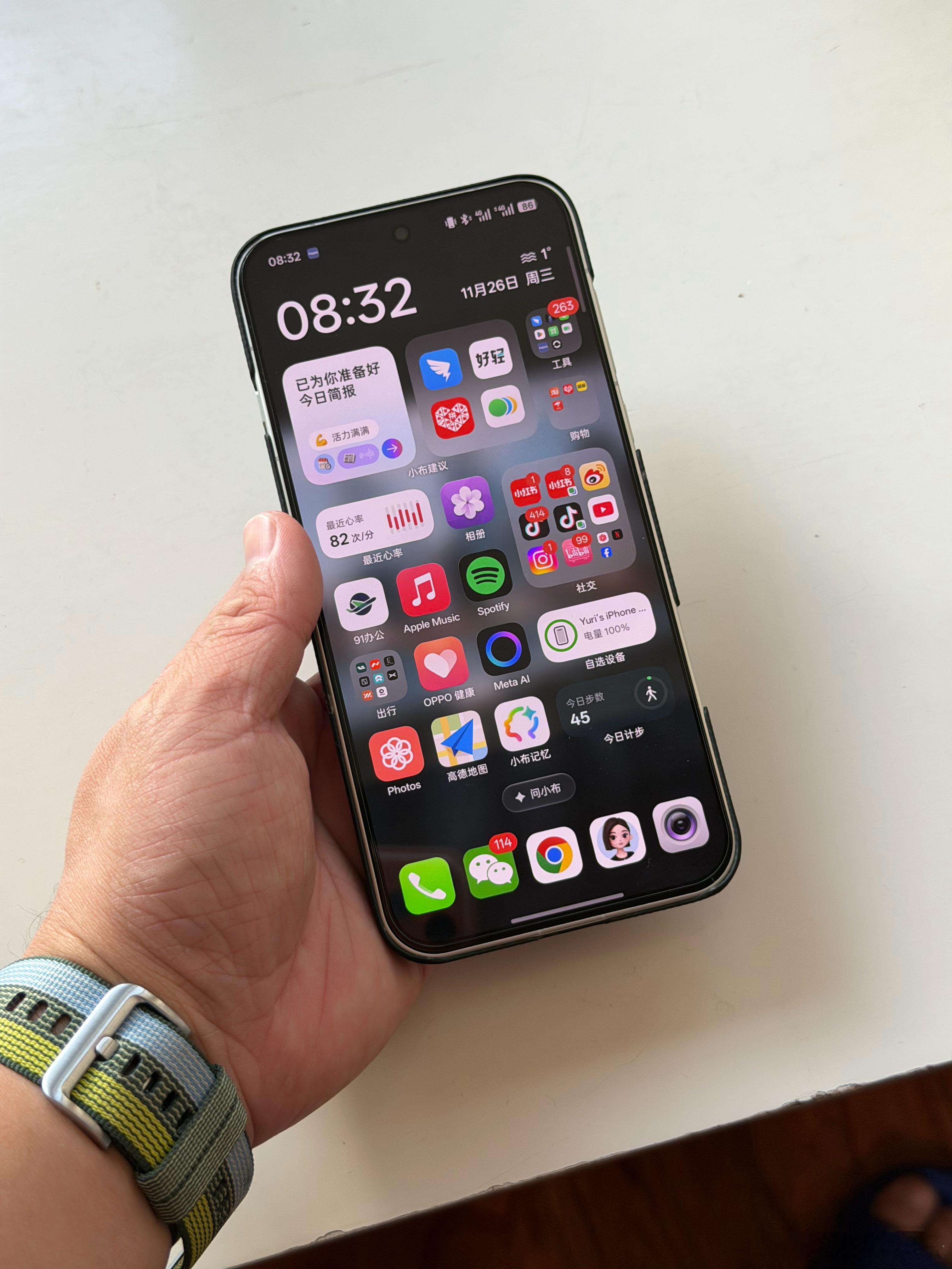 手机还是要贴钢化膜兄弟们…不然早上就没好心情了哈哈哈再贴一张满血复活✅iphone17prooppox9pro