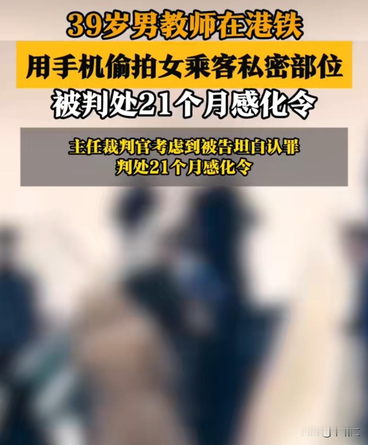 39岁男教师港铁偷拍女乘客,认罪判21个月感化,师德尽失遭唾骂 港铁里竟藏着龌龊事,39岁男教师干出丢人勾当,在扶手电梯偷拍女乘客私密部位,行径卑劣又猥琐,事发后被依法追责,终获应有惩罚。 这事发生在今年8月31日,地点就在港铁中环站港岛线,当时男子趁乘坐扶手电梯,悄悄拿出iPhone12 Pro,顺着女子衣服下方偷拍,专盯私密部位,全程鬼鬼祟祟。 女子毫无防备,被人暗中侵犯隐私,想想都让人膈应,这种偷拍行为不光缺德,还触碰法律红线,香港早有条例打击这类窥淫偷拍行径,最高能判五年监禁。 事发后案件推进审理,11月25日香港东区裁判法院开庭宣判,男子被控非法拍摄或观察私密部位罪,面对证据没敢狡辩,选择坦白认罪求轻判。 主任裁判官综合案情,考量到他主动认罪的情节,最终判处21个月感化令,虽没直接关监狱,但需接受感化主任监管,定期接受辅导改造。 感化令可不是没处罚,期限1到3年不等,期间得乖乖听话受监管,接受针对性辅导,目的是帮其改邪归正,重新回归社会做守法公民。 可大伙看着判决满是不满,身为男教师本应传道授业,品行得端端正正,却干偷拍这种见不得人的事,师德碎一地,根本不配为人师表。 女乘客平白遭此侵犯,身心都受伤害,私密隐私被肆意践踏,这种创伤难轻易平复,偷拍者只顾自己龌龊私欲,完全没顾及他人感受。 港铁本是公共空间,大家出行都该安心,可总有不法分子钻空子,趁人不备干坏事,警方也一直高调执法,就是要打击这类侵犯隐私的恶行。 身为教师本该以身作则,给身边人树好榜样,可这男子偏走歪路,无视法律底线,丢了职业尊严,也毁了自己名声,往后难抬头做人。 偷拍从来不是小事,是对他人隐私的严重侵犯,法律绝不纵容,不管身份高低,犯了错就得担责,别抱有侥幸心理挑战底线。 师德为先立人品,守法为基行正道,隐私不容侵犯,底线不可触碰,丢了良知失了分寸,终究要为卑劣行径买单。