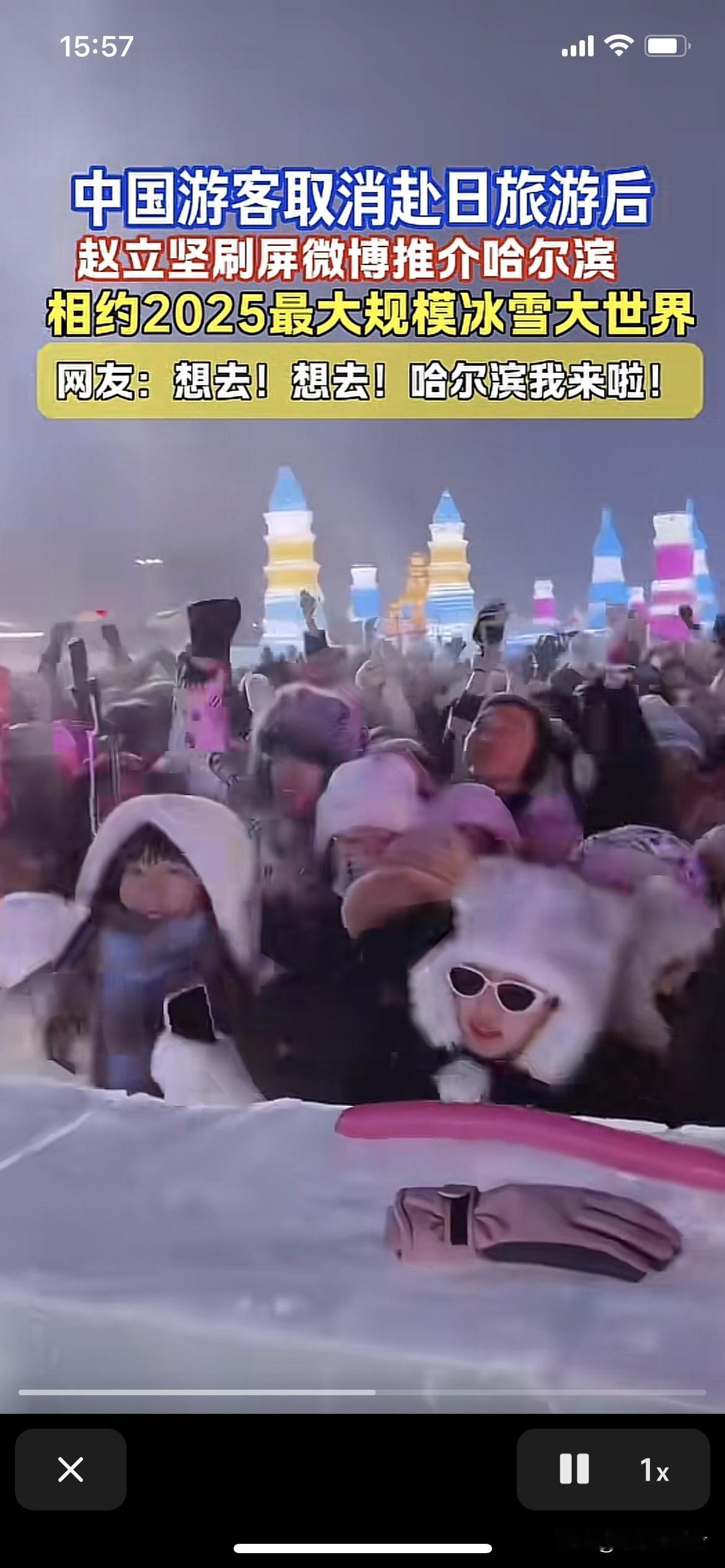 来哈尔滨看冰雪大世界。不要怕冷。屋里零上二十二以上,放心有暖气。在室外一定要买东北羽绒服和棉裤及棉鞋手套帽子。羽绒服里加上保暖衬衣衬裤。就可以扛住室外零下二十多度的气温了。进屋就如温暖的春天。 干嘛去日本,在大美中国有多好[鼓掌] 来哈尔滨看冰雪大世界吧!