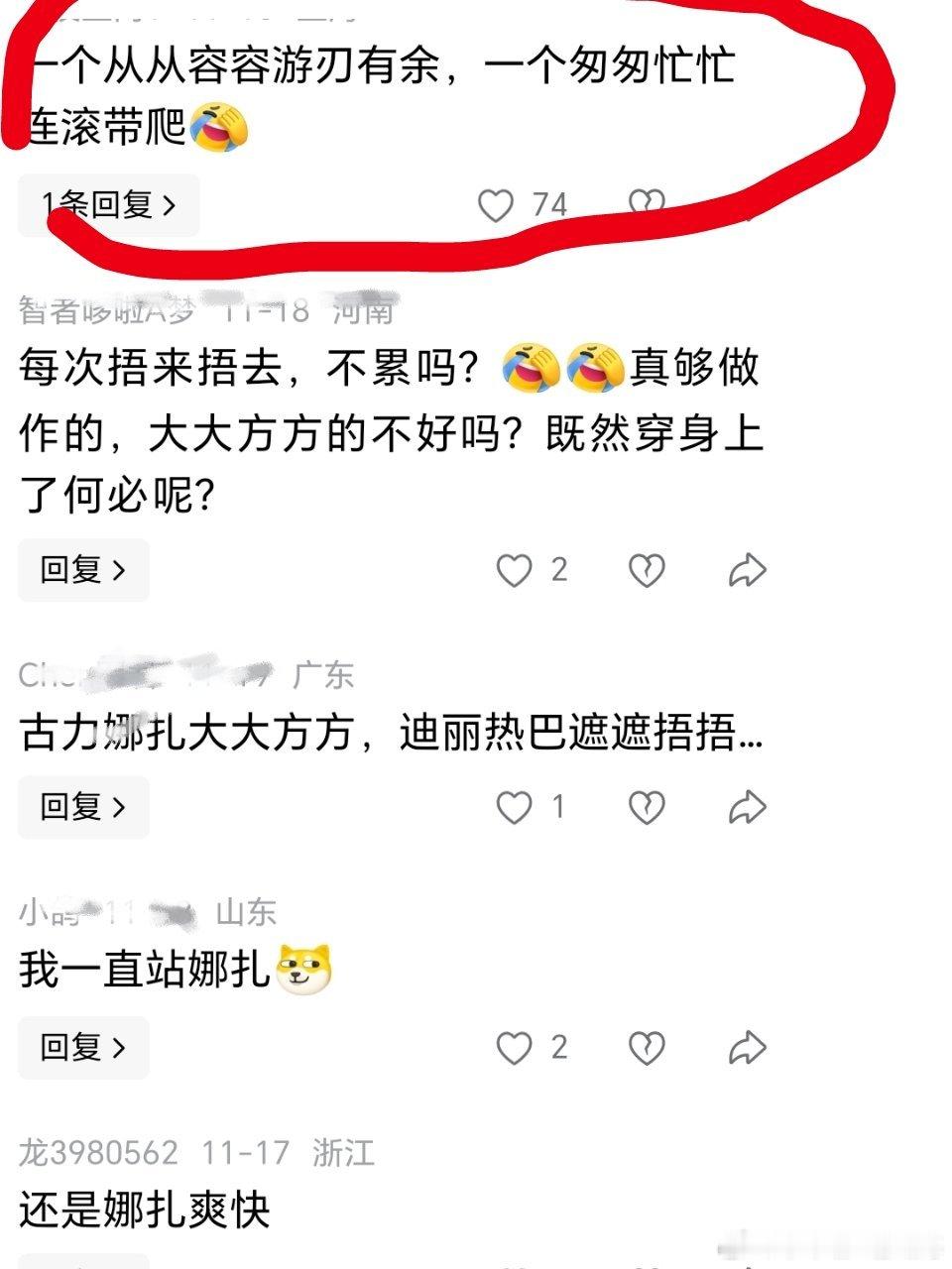 要被网友娜扎和迪丽热巴有什么区别的评论区笑鼠了,居然用上了热梗“一个从从容容游刃有余,一个匆匆忙忙连滚带爬”哈哈哈哈哈网友脑洞怎么想的。