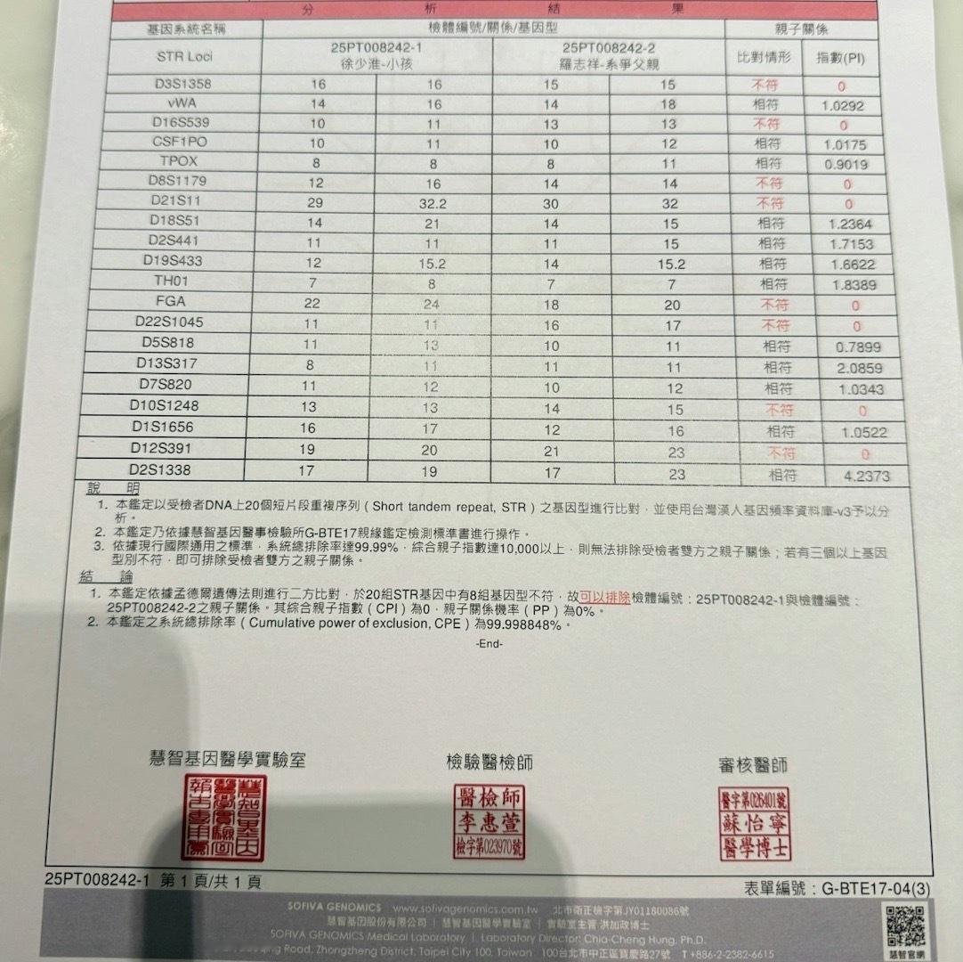 罗志祥经纪人发文罗志祥经纪人晒亲子鉴定 11月26日,罗志祥经纪人发文澄清孩子为罗志祥亲生的传闻,晒出亲子鉴定报告证明无血缘关联。“虽然他们没有血缘关系,小猪给了他们满满的爱,补足了他们缺少父爱的那块空缺,让他们在成长的过程中不会感到自卑。”