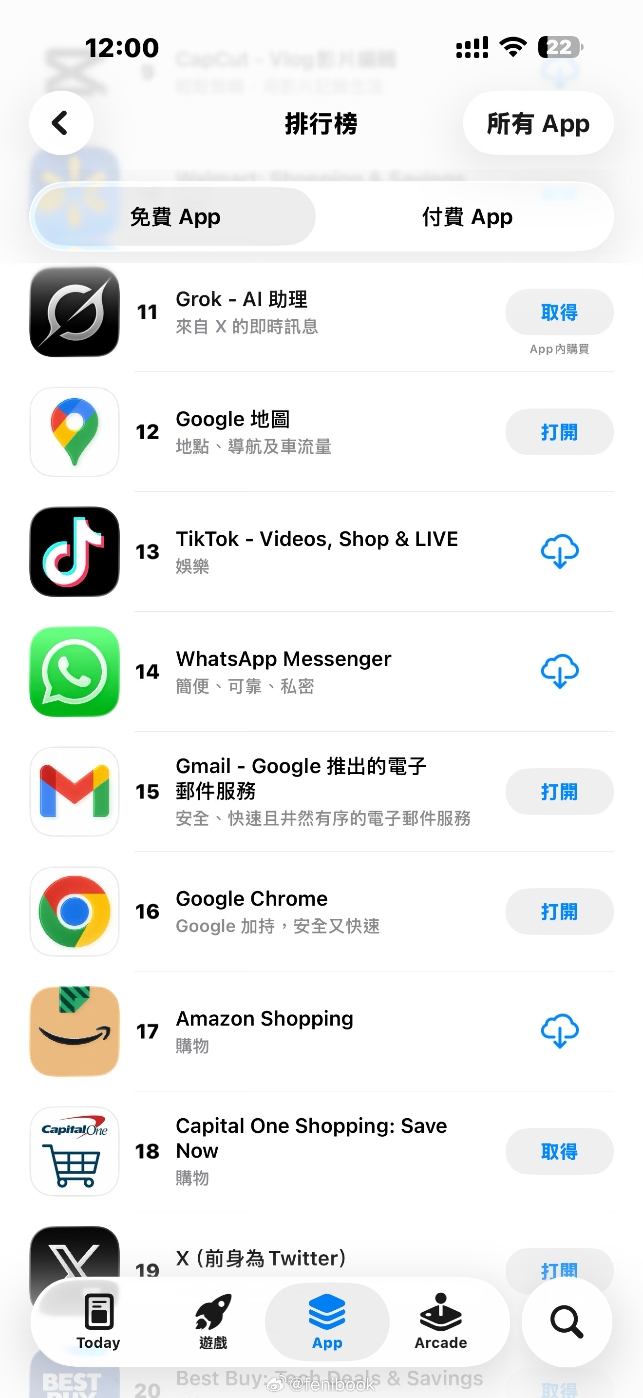 苹果App Store排行榜前20居然有5个谷歌全家桶,哈哈哈哈另外,前11名有5个都是AI软件,足以证明Apple Intelligence有多失败