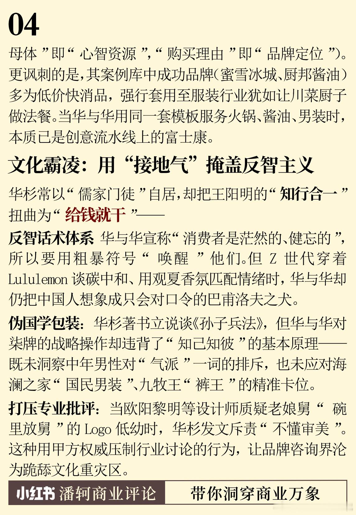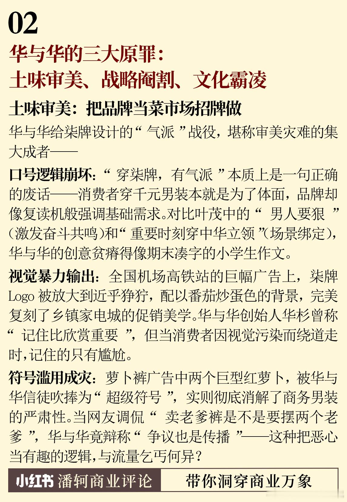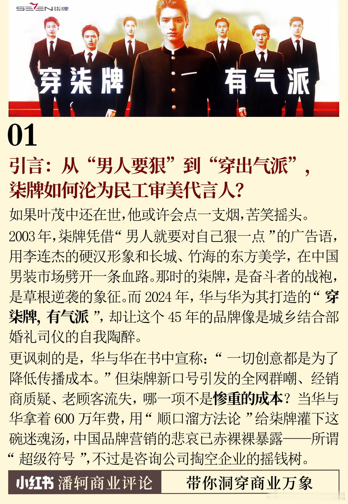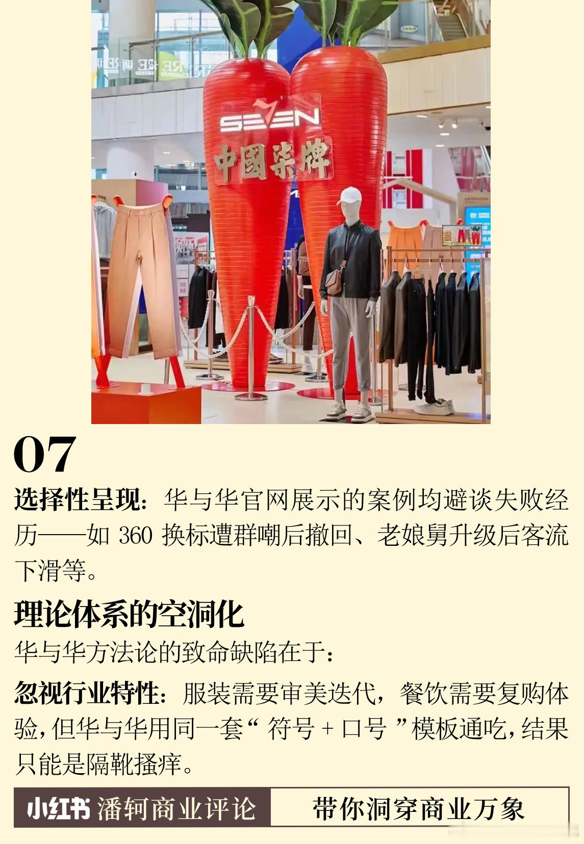 罗永浩 华杉罗永浩 录音上周才知道,福建的柒牌男装也被服务过!华与华们最大的危害,不是生产了土味设计,而是用短期流量狂欢麻痹企业神经,让品牌甘愿沦为行尸走肉。