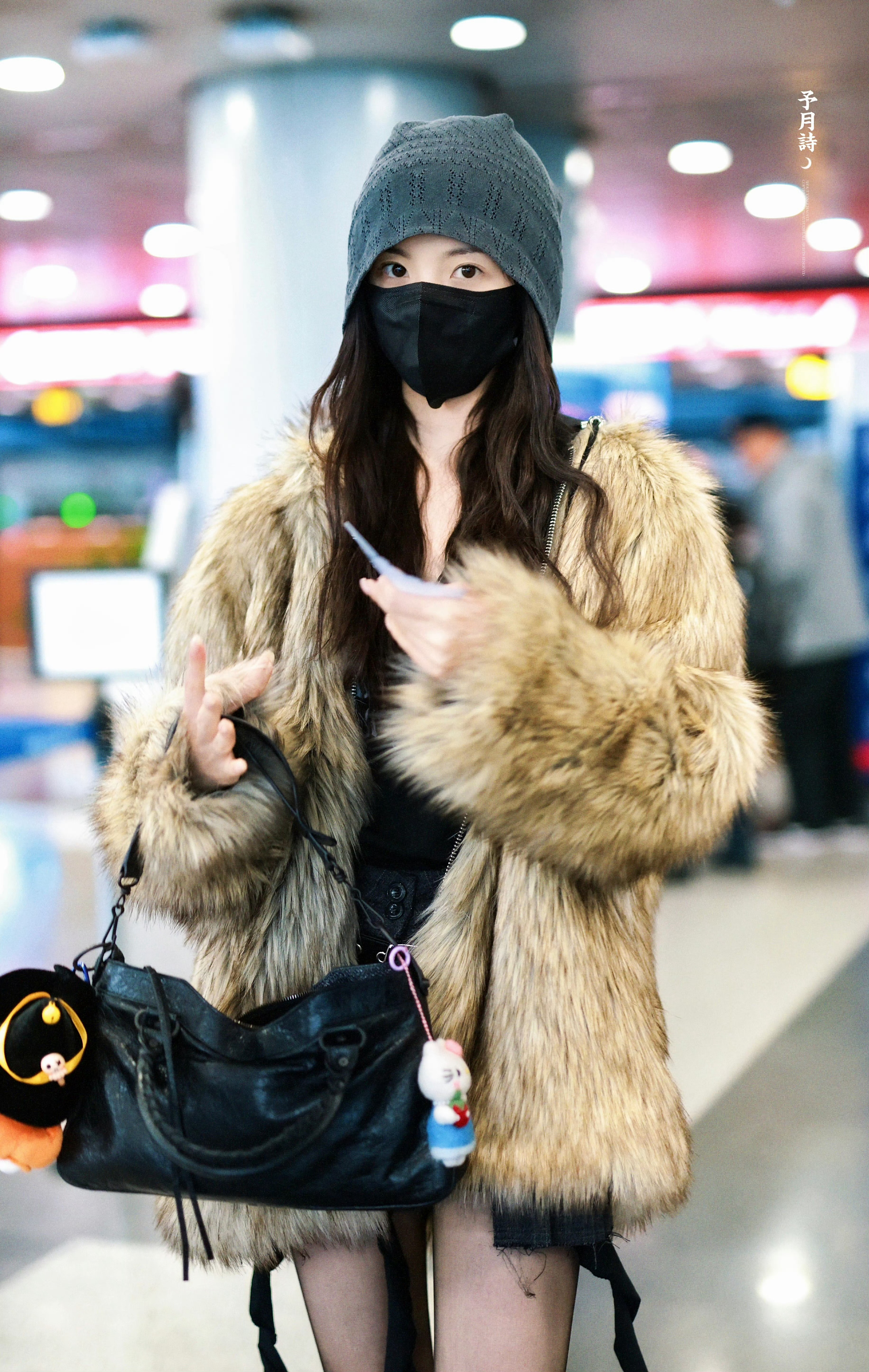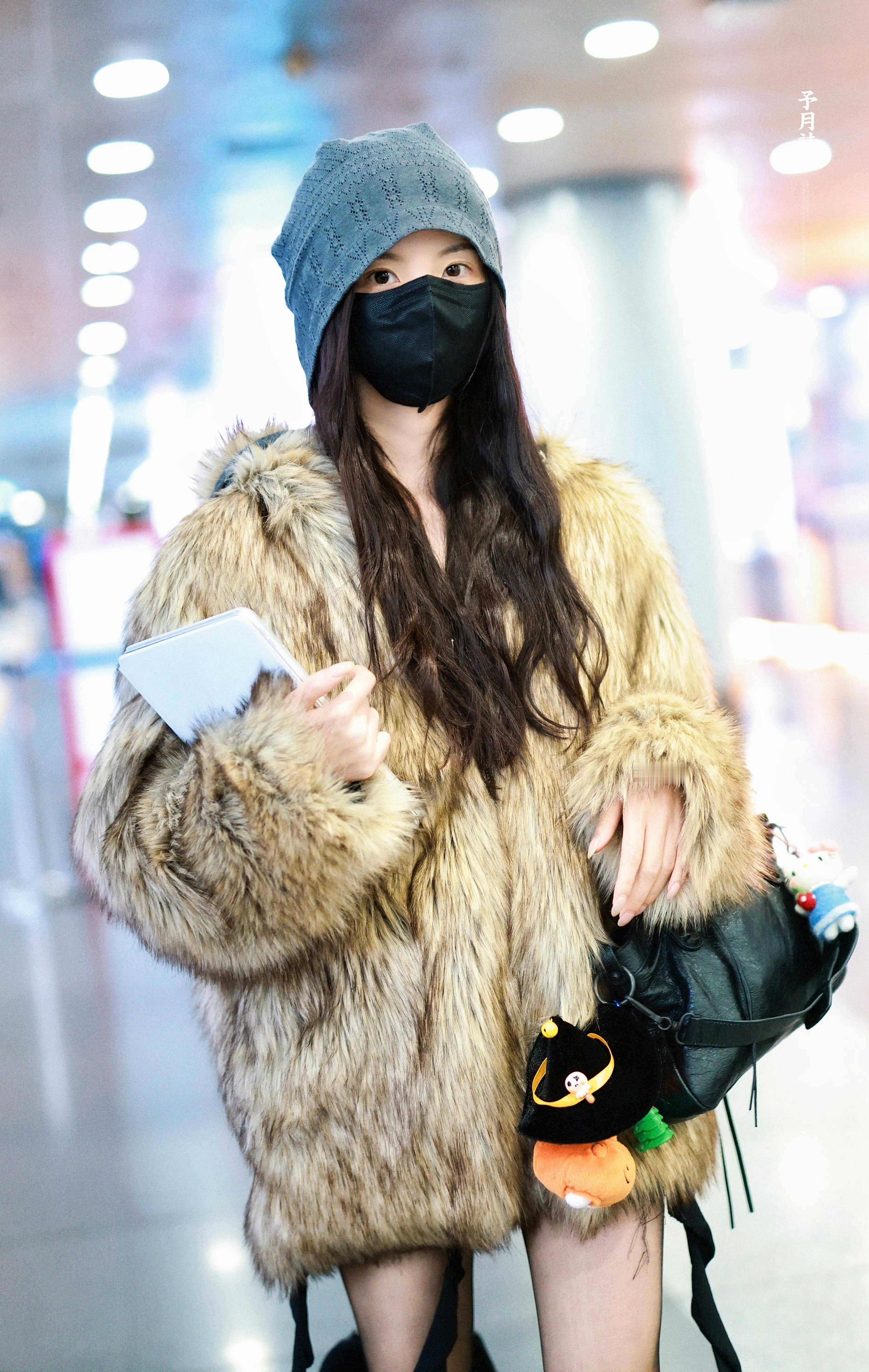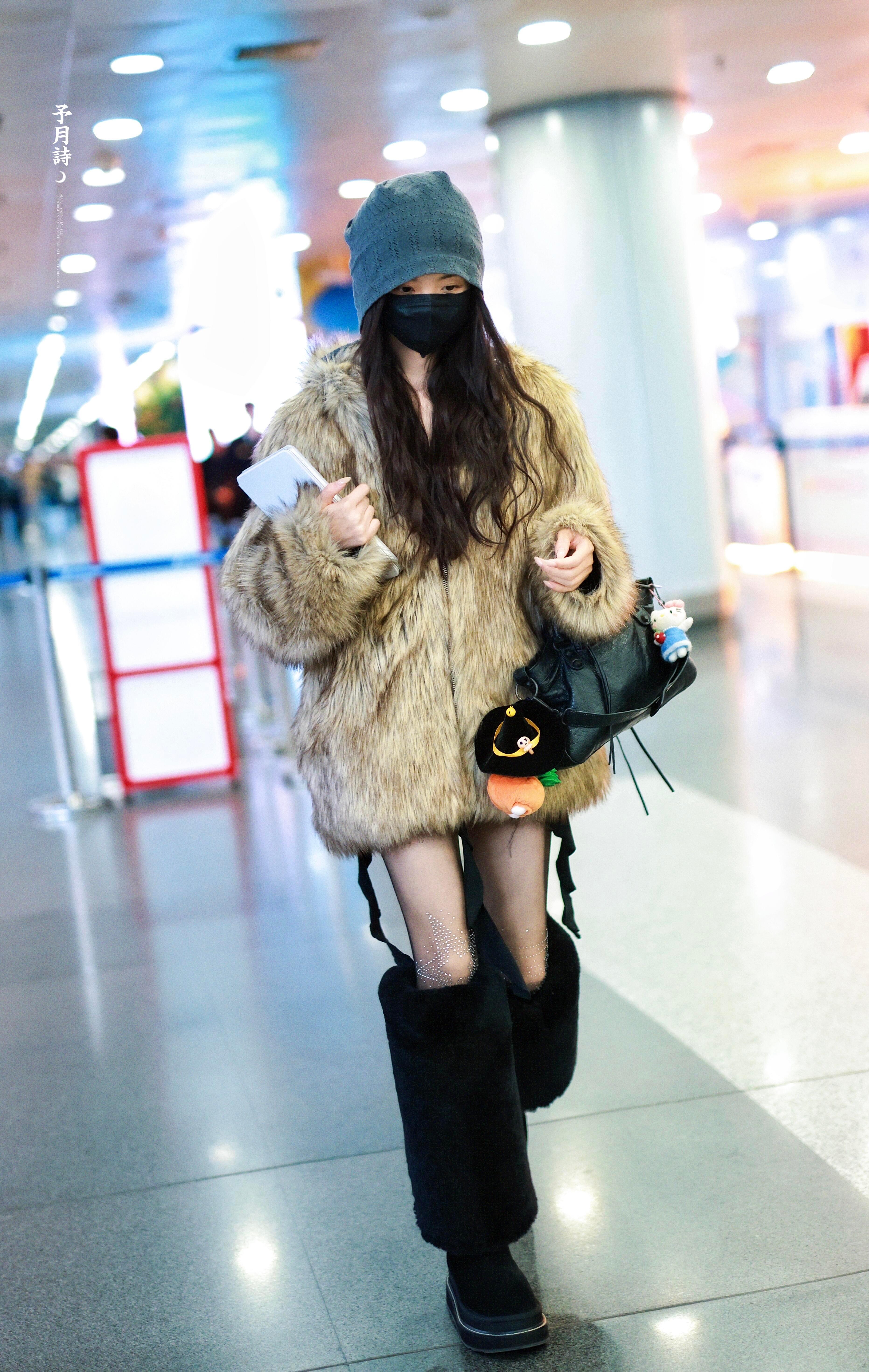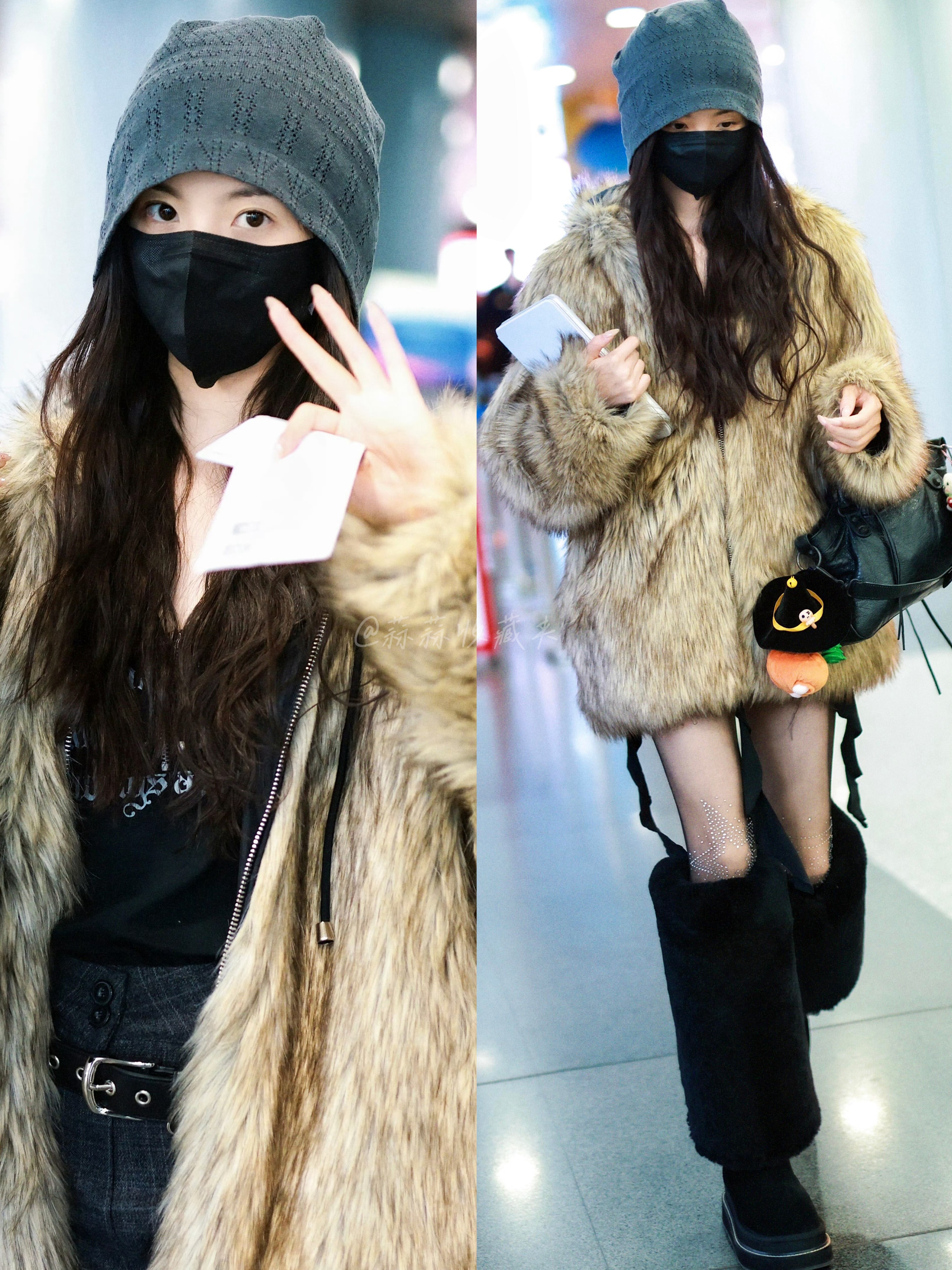 杨超越今日机场穿搭好辣的小🐑,毛茸茸的皮草看着也感觉很暖和🥺