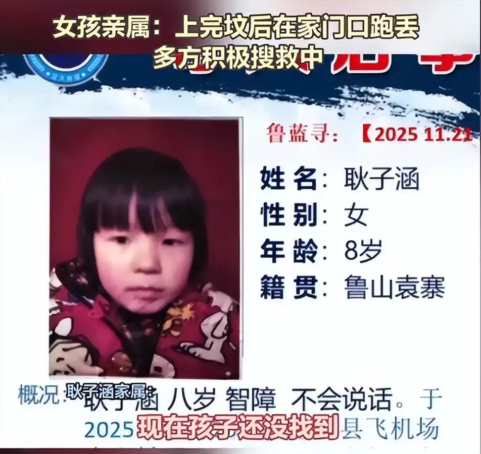 万万没有想到,牵动无数人的心的鲁山8岁女童,最终传来的是最让人揪心的消息!经过5天的焦急搜寻,这个有智力障碍、不会说话的孩子,遗体竟在离走失点仅1公里的养鸡场化粪池被发现,而这处化粪池的盖子,还留着一处光秃秃的口子。 11月20日下午4点多,70多岁的奶奶骑着电动车,带孙女耿子涵去邻村上坟祭拜老姥爷。返程时路过亲戚家,奶奶怕孩子乱跑,就用绳子把她的手和电动车绑在一起,进屋和亲戚说几句话,前后不过十分钟的功夫。可等奶奶出来,电动车旁早已空无一人,孩子竟挣脱绳子跑没影了 ! 奶奶当场就慌得腿软,骑着电动车一路哭一路追,嗓子喊哑了也没回应。亲戚邻居们赶紧帮忙,分头往各个胡同、田间搜寻,可村子里胡同纵横,周边还有山林,找了大半天连孩子的影子都没见着。调取的监控显示,女童先后在16时02分、16时10分出现过,最后一次有人看到她,是接近17点时在村口追打小狗,之后便没了踪迹 。 孩子走失的消息传开后,全网都揪着心。家属报警后,蓝天救援队、民警还有热心群众纷纷加入搜救,动用了无人机、搜救犬,把方圆10公里的范围翻了个遍,田间地头、山林沟渠、废弃窑洞都没放过,有的搜救人员甚至找到凌晨4点,可始终没有孩子的音讯。更让人费解的是,专业搜救犬两次追踪,都从孩子最后出现的地方径直跑回了她家,搜救一度陷入僵局。 就在大家快要撑不住的时候,11月25日下午,警方按计划对周边水域抽水排查,当抽到养鸡场的化粪池时,有民警突然发现水面上漂浮着黑影。打捞上来确认后,正是失踪5天的耿子涵,孩子已经没有了生命体征 。全家人悲痛欲绝,谁也没想到,大家找遍了远山近田,却偏偏漏了离最后目击点这么近的地方,而那处没盖严的化粪池,竟成了夺走孩子生命的“隐形陷阱”。 孩子的家庭本就不易,父亲常年在外打工,母亲有智力障碍早已离异再嫁,她和姐姐全靠70多岁的奶奶照看。因为孩子爱乱跑,奶奶有时只能用绳子拴着她,之前也有过跑丢被邻居送回的经历,可这次,意外却再也无法挽回 。 通过这件事,我最想说的三点: 1. 监护无小事,一时大意悔终身。对于特殊儿童,哪怕是几分钟的疏忽,都可能酿成无法挽回的悲剧,照看孩子容不得半点侥幸。 2. 安全隐患要排查,细节能救命。化粪池、沟渠、深井这些地方,看似不起眼,却可能成为“夺命陷阱”,及时加盖、设置警示,才能避免意外发生。 3. 善意转发有力量,多一份关注就多一份希望。这5天里,无数网友转发寻人启事,热心人提供线索,这份善意虽没能留住孩子,但让家属感受到了温暖。 感叹一句:细节关乎生死,大意酿就悲剧,愿每个孩子都能被细心守护,愿这样的痛心事件不再发生。